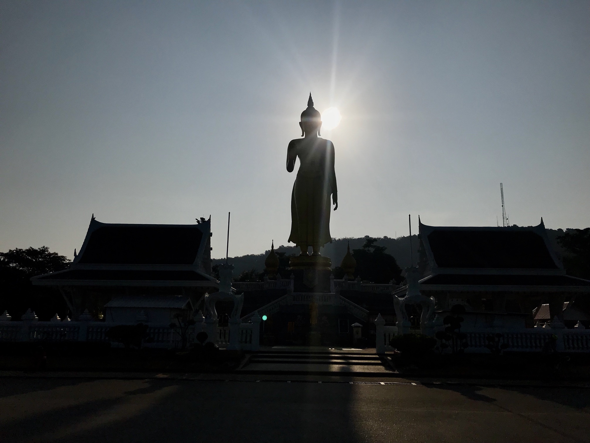 ซึ่งสถานที่ที่เราจะไปปั่นชิววันนี้มีชื่อว่า เขาคอหงส์ ตั้งอยู่ในบริเวณของสวนสาธารณะหาดใหญ่ ความสูงของเขาไม่มาก ประมาณแค่ 371 แต่เป็นไต่ 10% เรื่อยๆ ประมาณ 2 กิโลเมตร ก็จะถึงยอดที่มีพระพุทธมงคลมหาราช พระพุทธรูปปางห้ามญาติ ประดิษฐานอยู่ยอดเขา เส้นทางระหว่างขึ้นก็จะเป็นธรรมชาติต้นไม้ร่มรื่นตลอดทาง ตอนเช้าๆมีเสียงนกคลาคลั่ง แสงแดดยามเช้ากระทบถนน สะท้อนเป็นเงา มองแล้วช่างสดชื่นสบายตา
