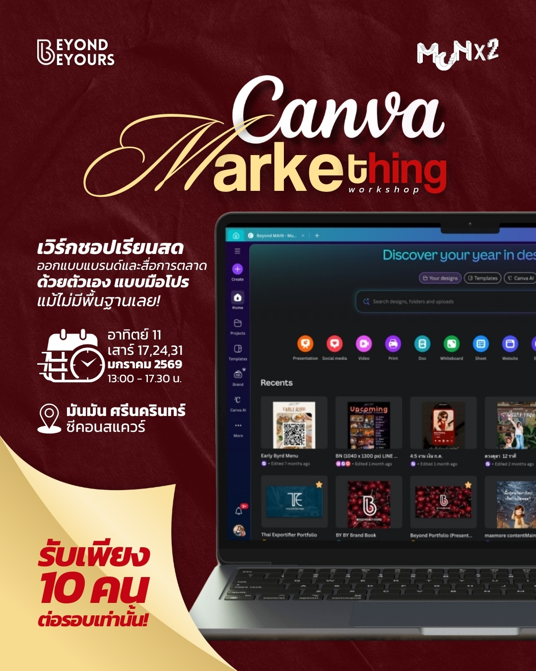 “คลาส Canva Markething เป็นการเรียนรู้ตั้งแต่ ปูพื้นฐาน Canva พร้อมเทคนิคการใช้เครื่องมือต่าง ๆ แบบเข้าใจง่าย มาพัฒนาสื่อของผู้ที่เรียนในคลาส ไม่ว่าจะเป็นไอเดียปารพัฒนางานสร้างสรรค์ ไม่ว่าจะเป็นการสร้าง Brandkit (โลโก้, สี, ฟอนต์, Mood & Tone) การออกแบบสื่อออนไลน์เพื่อโปรโมทสินค้าและบริการ รวมถึงการพัฒนาดีไซน์ ในชิ้นงานใหม่ๆ ในคลาสนี้ถือว่าตอบโจทย์ความคุ้มค่าให้กับนักนวัตกรรมสื่อ และคอนเท้นต์ ครีเอเตอร์ ที่อยากได้ไอเดียใหม่ๆ มาสร้างมูลค่าในสายอาชีพมากขึ้น ทั้งนี้ทาง BeYound BeYours ต้องขอขอบคุณ พี่แจว Joy Luck club คลับค้นสุข และพี่กบ G Intelligent ที่ชวนมาเปิดคลาสนี้ให้กับสื่อยุคใหม่ที่สนใจคลาส Canva Markething ณ ที่นี้ด้วย และสำหรับใครที่สนใจและสอบถามรายละเอียด ‘Canva Markething Workshop’ By Beyond Beyours สามารถเข้าไปติดตามข้อมูลทาง https://beyondbeyours.my.canva.site/website/canva-markething-workshop ค่ะ”