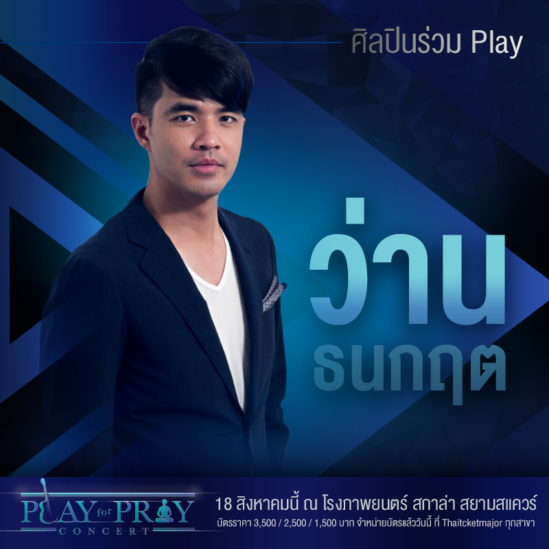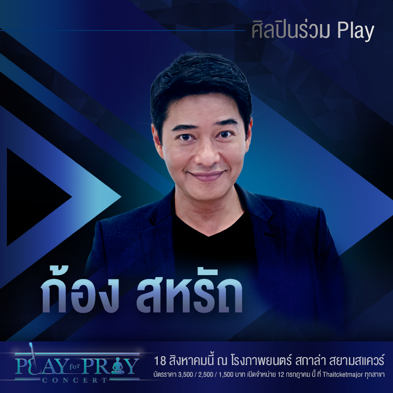 สำหรับท่านใดสนใจอยากมีส่วนร่วมในคอนเสิร์ตครั้งสำคัญครั้งนี้ กับ Play for Pray Concert ในวันเสาร์ที่ 18 สิงหาคมนี้ เวลา 17.00 น. (ประตูเปิด 16.00 น.) บัตรราคา 3,500 บาท / 2,500 บาท และ 1,500 บาท เปิดจำหน่ายบัตรแล้ววันนี้ ที่ ไทยทิคเก็ตเมเจอร์ ทุกสาขา หรือติดตามรายละเอียดข้อมูลทาง Facebook fanpage : Play for Pray ห้ามพลาด!