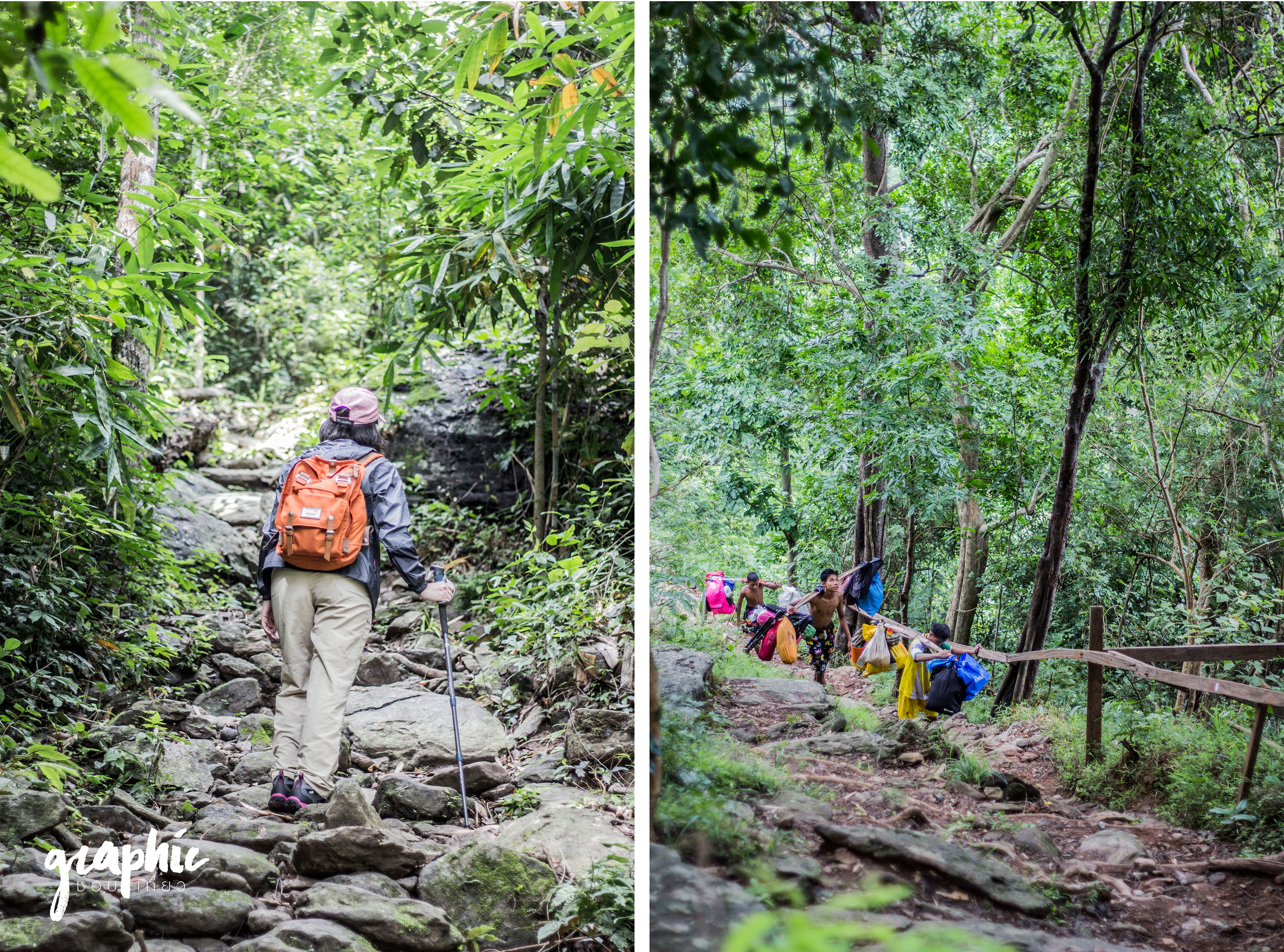 เราเดินทางจากกรุงเทพเวลา 4 ทุ่ม ไปถึงที่อุทยานแห่งชาติรามคำแหง ประมาณ ตี 4 กว่า แค่ใกล้ๆ เวลาที่เหลือนั้นก็นอนเอาแรง พอรุ่งขึ้นก็เตรียมตัวจัดการของที่จำเป็นขึ้นสู่ยอดเขาหลวงสุโขทัย หลังจากนั้นก็เดินเท้าเข้าสู่เส้นทางหฤโหด เริ่มเดินเท้าก็ขึ้นตั้งแต่ต้นแล้ว ระยะทางนั้นเป็นเส้นทางที่ชันพอสมควรและลื่นได้ตลอดเวลา เส้นทางนี้เดินขึ้นได้เองโดยไม่ต้องมีเจ้าหน้าที่ ด้วยเพราะเส้นทางเดินค่อนข้างชัดเจน และมีป้ายบอกอยู่แทบทุกจุด เราใช้เวลาเดินขึ้นถึงแคมป์ 5 ชั่วโมง เดินขึ้นเรื่อยๆเหนื่อยก็พัก เส้นทางนี้ยังมีน้ำถังเย็นๆไว้ให้เติมและที่สำคัญเส้นทางนี้สมเด็จพระเทพรัตนราชสุดาฯ ทรงเคยเสด็จทางเท้าพิชิตยอดเขาหลวงเมื่อวันที่ 12 กันยายน 2537