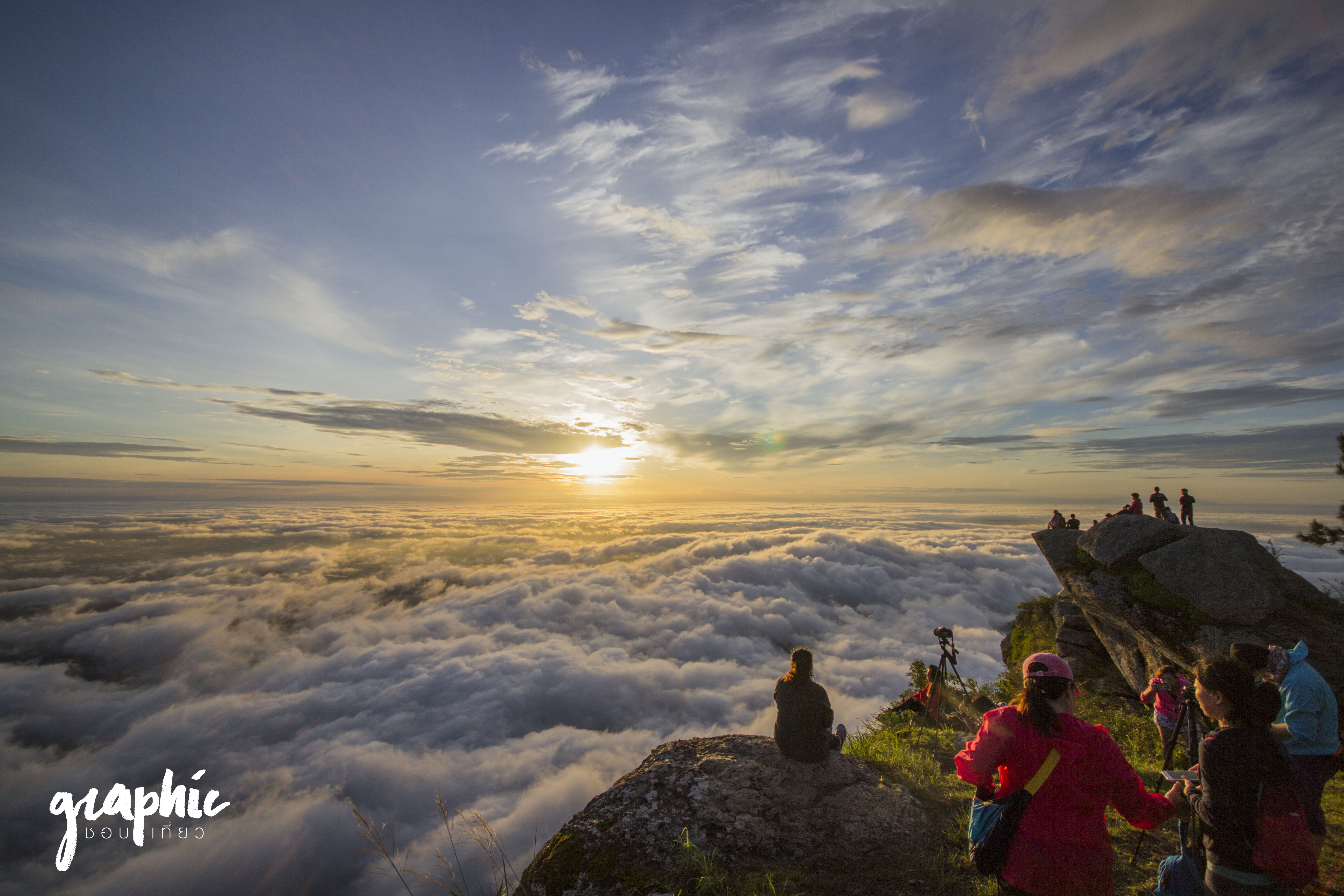 วันที่ 2 ตี 5 เราก็เดินทางมุ่งหน้าเข้าสู่ “ยอดเขานารายณ์” ซึ่งเป็นจุดชมวิวพระอาทิตย์ขึ้นและเป็นจุดเด่นของที่นี้ ด้วยลักษณะหินที่ยื่นออกมา บางคนมองเป็น “ปลาโลมา” บางคนมองเป็น “หัวนก” ตามจินตนาการของแต่ละคน จากนั้นพระอาทิตย์ก็ขึ้น สิ่งที่เห็นนั้นคือ “หมอก” ที่มารวมตัวกันหนาแน่นยังกะสำลีนุ่มๆ นับว่าเป็นภาพที่สวย อลังการงานหมอกกันเลยทีเดียว แทบอยากจะไปเดินเล่นบนนั้น นับว่าเราพิชิตอีกยอดเขาหนึ่ง พอชมวิวอลังการๆหอมปากหอมคอ ก็กลับแคมป์เพื่อทานข้าว หลังจากนั้นเราก็เดินทางลงสู่ภาคพื้นดิน ตอนลงนั้นขาแทบจะเดินไม่ได้เลย ปวดก็ปวด ด้วยความเดินผิดจังหวะด้วยล่ะ แต่ก็เดินลงมาด้วยความปลอดภัย กว่าขาจะหายปวดเป็นอาทิตย์ๆ