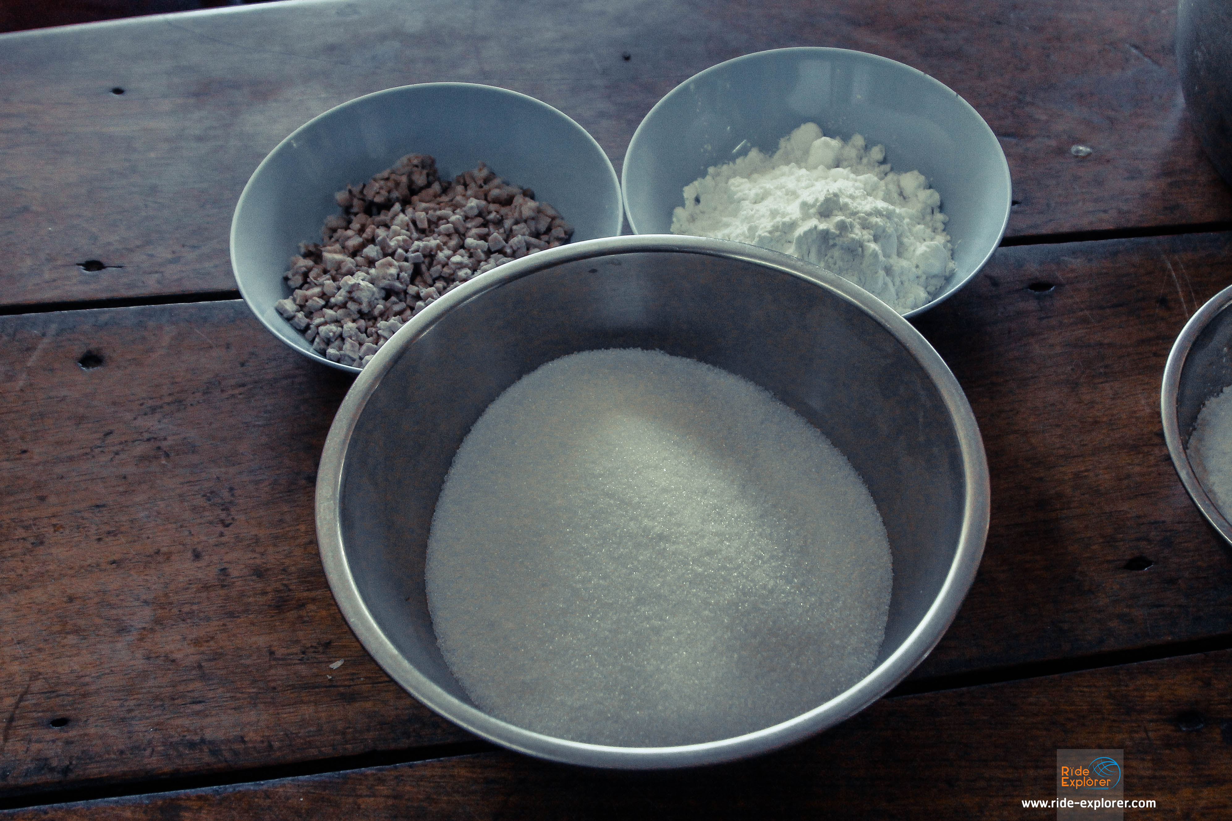 ส่วนผสมง่าย ๆ “แป้งสลิ่ม เผือก และ น้ำตาลทรายขาว”
