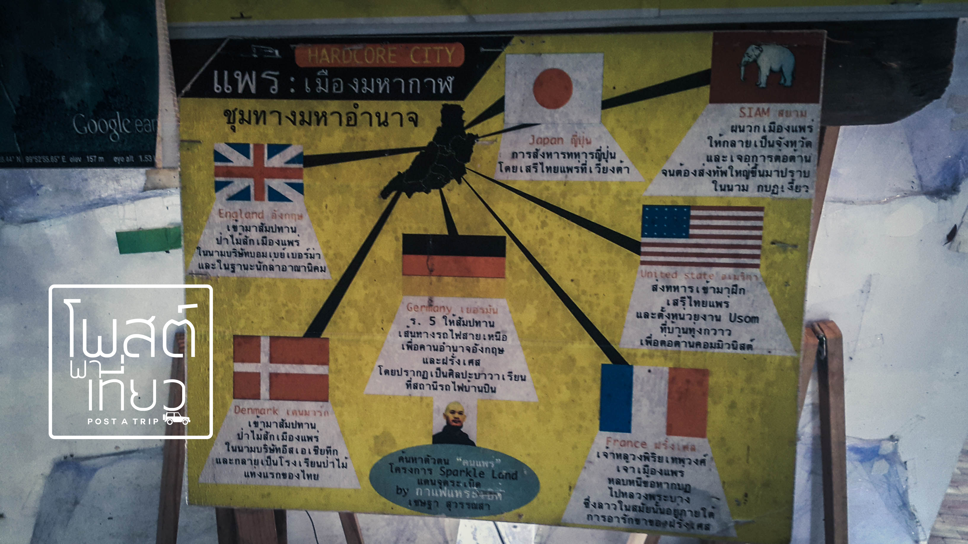 สำหรับภารกิจเมืองลอง เรายังไม่จบแค่เรื่องผ้า ทางททท. ยังพาเราไปสืบค้นเรื่องราวประวัติศาสตร์เมืองแพร่ กันต่อ ที่ ร้าน “กาแฟแห่ระเบิด”