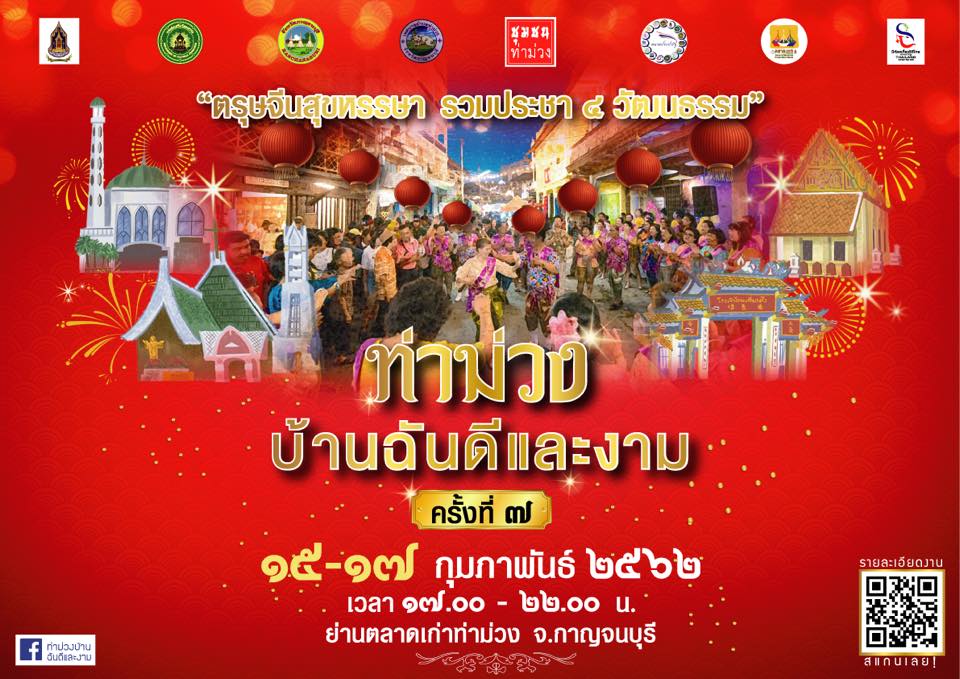 ขอเชิญมาร่วมงานท่าม่วงบ้านฉันดีและงามครั้งที่๗ ระหว่างวันที่๑๕-๑๗ กุมภาพันธ์ ๒๕๖๒ ระหว่างเวลา ๑๗.๐๐ – ๒๒.๐๐ น. ณ ย่านตลาดเก่าท่าม่วง จังหวัดกาญจนบุรี ถึงแม้ว่าช่วงวันจัดงานจะผ่านวันตรุษจีนไปแล้ว แต่ไม่มีคำว่าสายเกินไปที่จะใช้โอกาสนี้ร่วมฉลองด้วยกันอีกครั้งกับธีม “ตรุษจีนสุขหรรษา รวมประชา ๔ วัฒนธรรม ” กับรูปแบบ Chinatown ที่ย่านเก่าท่าม่วง มารวยๆ เฮงๆ ปังๆ กับบรรยากาศที่แสนอบอุ่น เชิญร่วมแต่งกายสไตล์ ๔ วัฒนธรรม แบบไทยๆ เดินก็ชิล ใส่ Chinese พริ้วๆ ก็งาม สายแชะไม่ควรพลาด มาร่วมรำลึกถึงความงดงามของรากวัฒนธรรมดั่งเดิมที่มีเสน่ห์ ในวิถีของท่าม่วงบ้านเรา ท่าม่วงบ้านฉัน ในบรรยากาศ แบบกันเอ๊ง กันเอง ร่วมประทับใจให้หายคิดถึงอีกครั้ง