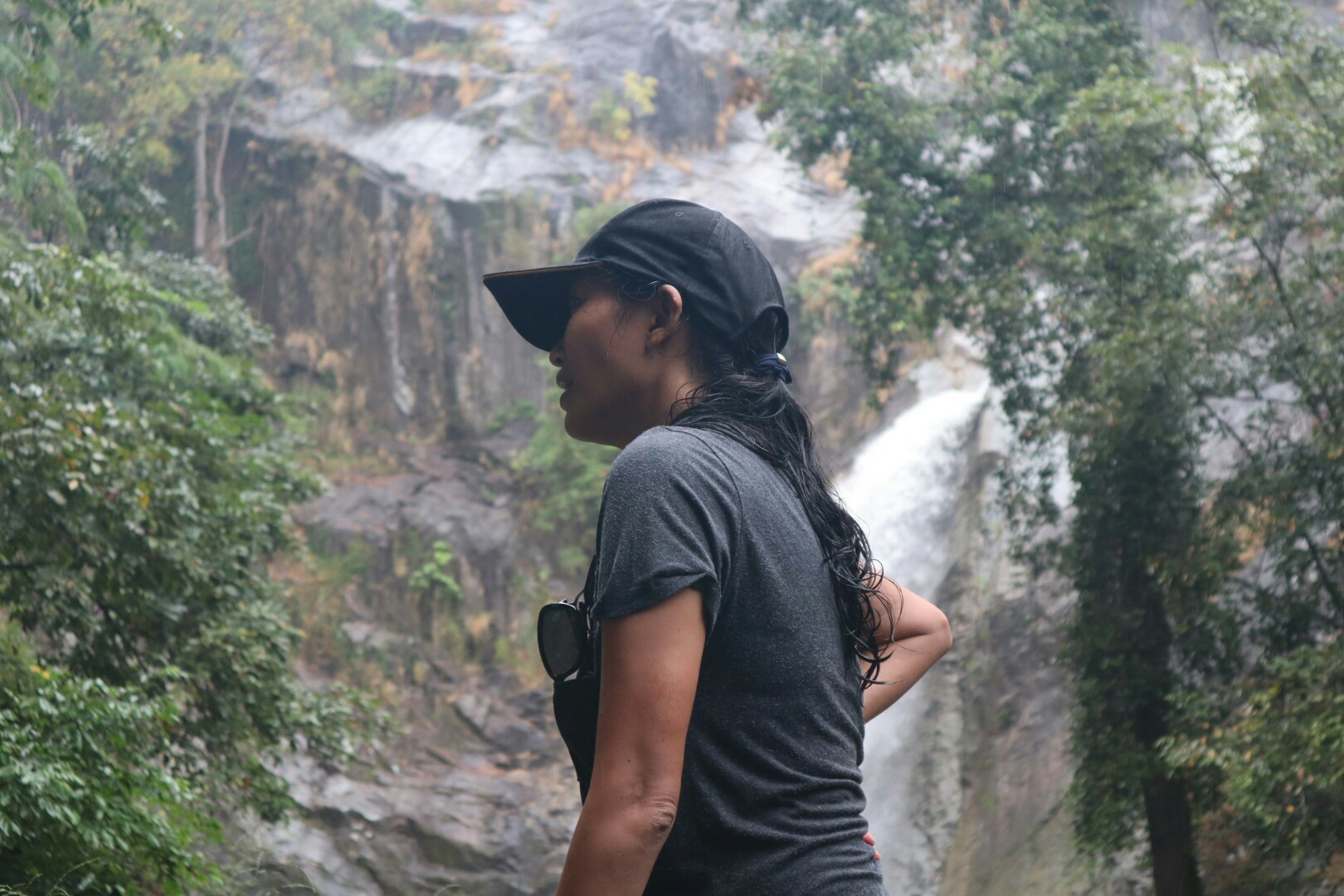 เดินต่อมาอีกเรื่อยๆ จะได้ยินเสียงน้ำที่ไหลจากที่สูง เป็นสัญญาณว่าเราเข้าใกล้น้ำตกแม่รีวาแล้ว แต่ยิ่งเข้าใกล้ ทางที่เดินค่อยข้างจะลื่นต้องใช้ความระมัดระวังเป็นอย่างมาก ก็มาถึงจุดชื่นชมน้ำตกแม่รีวา ภาพที่เห็นข้างหน้าเป็นน้ำตกขนาดใหญ่และสูงมาก เนื่องจากฤดูกาลนี้สามารถเห็นเพียงแค่ 3 ชั้น แต่ก็ยังคงความงดงามของธรรมชาติ ที่สร้างฉากสวย ๆ แบบนี้ขึ้นมา