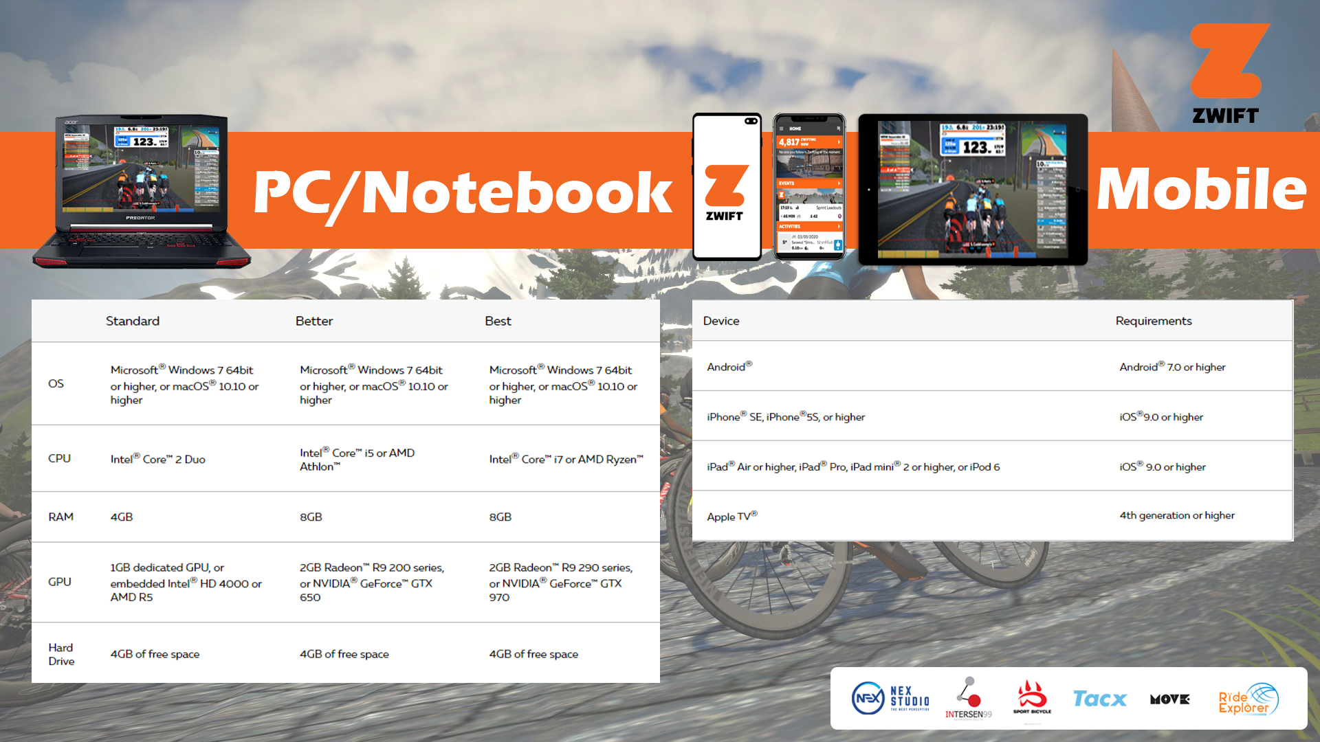 ข้อดีของโปรแกรม ZWIFT นอกจากจะช่วยให้เราปั่นและซ้อมจักรยานได้อย่างสนุกและมีวินัยเพิ่มมากขึ้นแล้ว สเปคเครื่องคอมพิวเตอร์หรืออุปกรณ์ที่นำมาใช้เพื่อเปิดโปรแกรมสเปคไม่ได้สูงมากนัก โดยสเปคที่ทาง ZWIFT แนะนำจะเป็น I5 หรือ AMD Athlon พร้อมระบบปฏิบัติการ Microsoft Window 7 แต่ทางที่ดีใช้ Window 10 เลยจะดีกว่า พร้อมกับ RAM 8GB และ GPU 2 GB