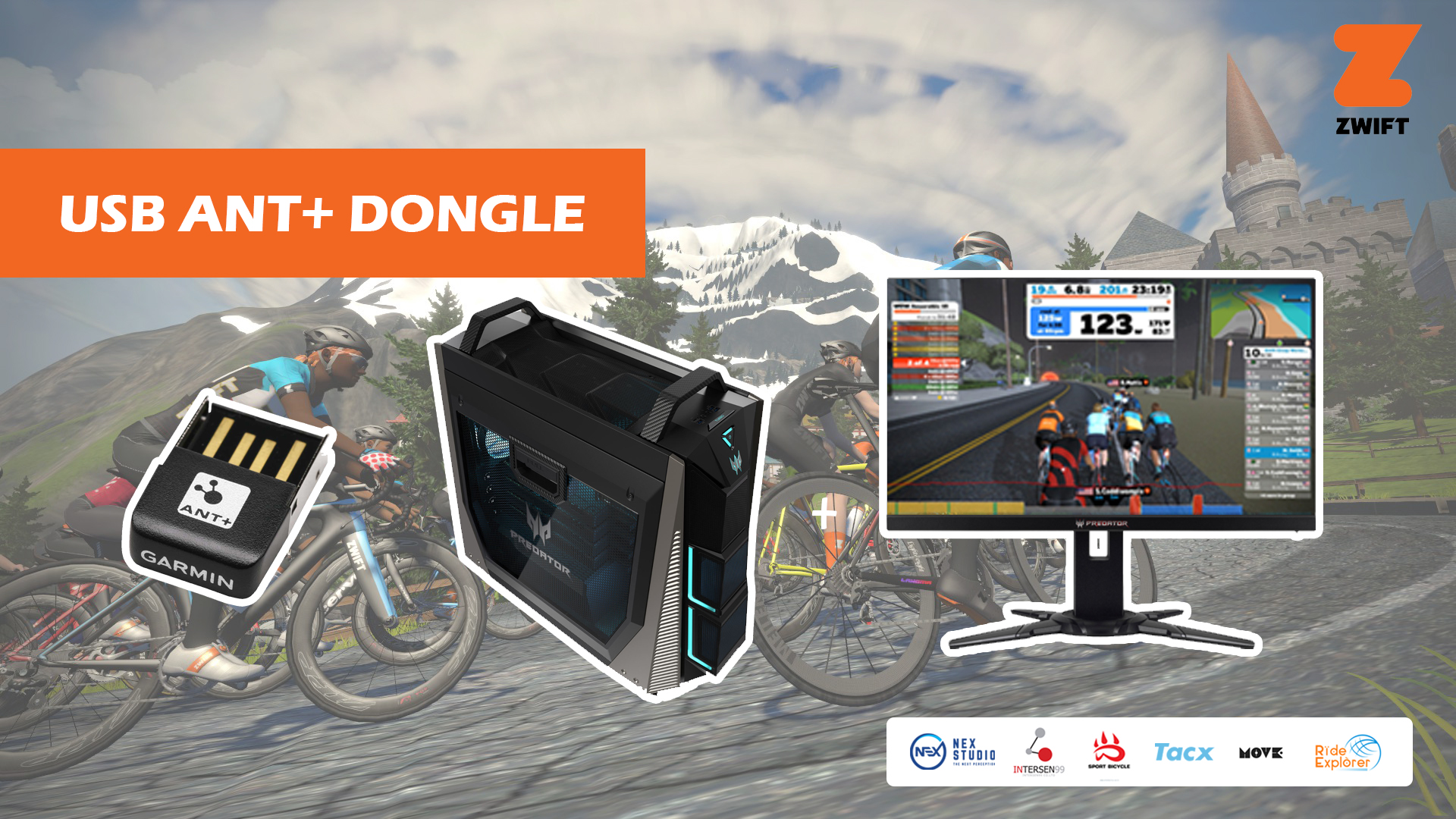 เป็นอุปกรณ์เสริมมีลักษณะคล้ายๆ กับ แฟลชไดร์ฟ ทำหน้าที่รับสัญญาน ANT+ จากอุปกรณ์ วัดต่าง ๆ อาทิ วัดรอบขา, วัดหัวใจ เป็นต้น หาก Computer เป็น PC ไม่ได้ติดตั้งอุปกรณ์ที่สามารถรับ Bluetooth ได้จึงจำเป็นที่จะต้องใช้ ANT+ Dongle ในการช่วยรับสัญญานต่าง ๆ ซึ่งในปัจจุบันสามารถหาได้ตั้งแต่ราคา 700 บาท ถึง ระดับ 1,000 บาท ขึ้นไป
