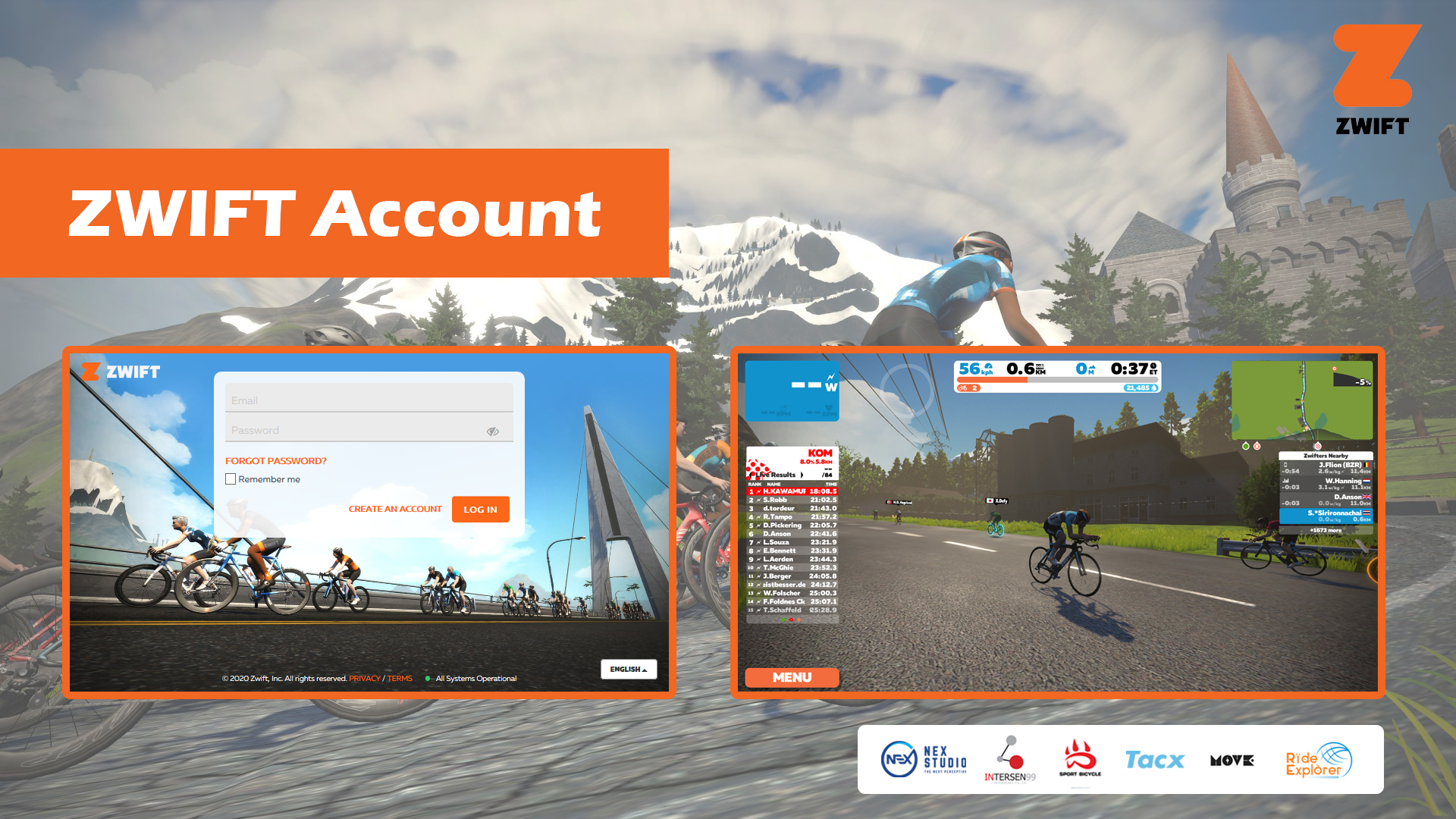 ZWIFT Account เปรียบเสมือนวีซ่าเพื่อใช้เข้าไปในโลกของ ZWIFT ซึ่งจะสามารถสมัครได้ที่ www.zwift.com เริ่มต้นจะสามารถลองเล่นฟรีได้ 7 วัน กับระยะทาง 25 กิโลเมตร หากต้องการที่จะสมัครสมาชิกรายเดือนค่าใช้จ่ายอยู่ที่ $14.99 หรือประมาณ 450 บาทต่อเดือน
