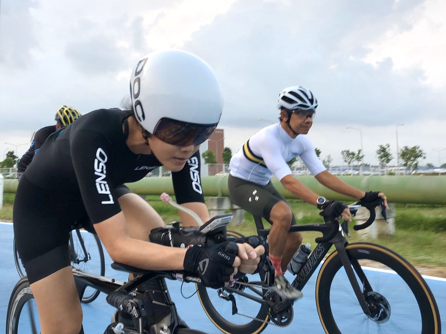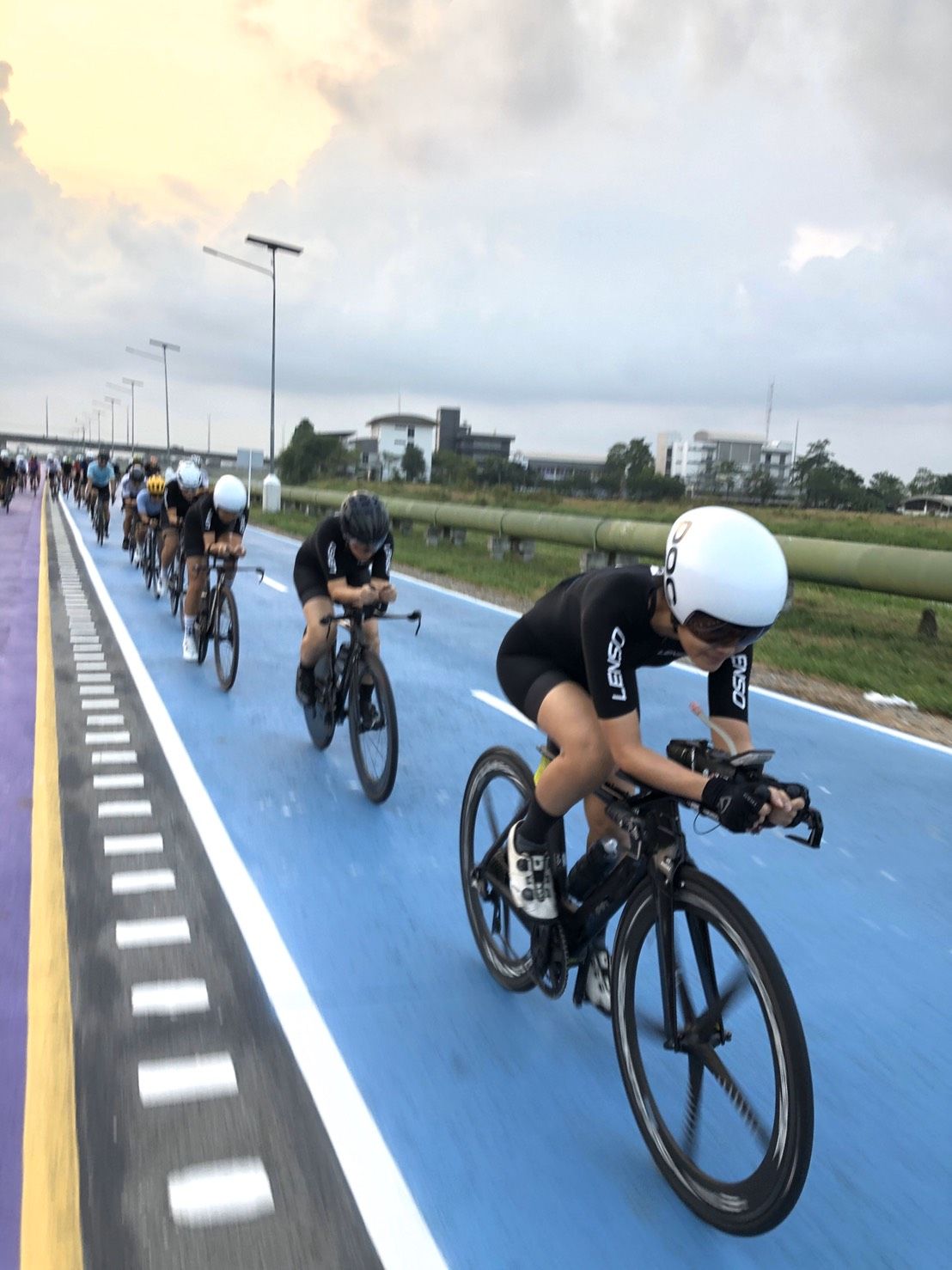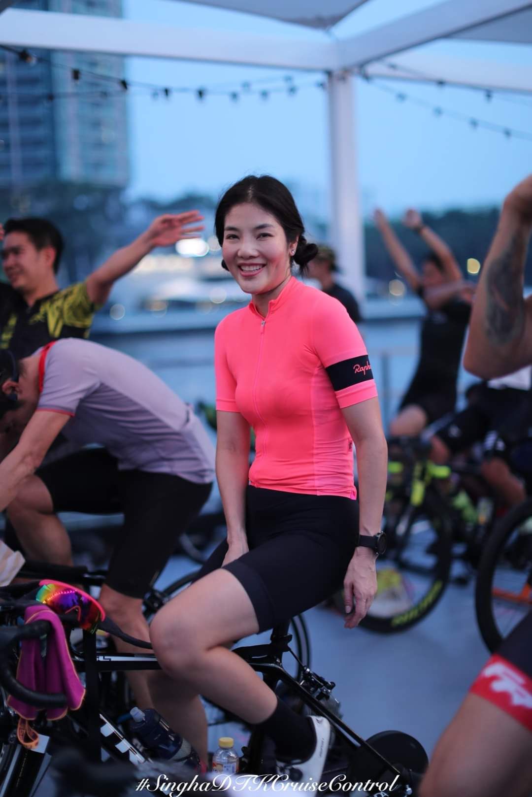 - ส่วนการปั่นจักรยานที่บ้าน ปกติจะปั่นเทรนเนอร์ เป็นประจำ สัปดาห์ละ 4 วันอยู่แล้วค่ะ ไปปั่นสกายเลน สัปดาห์ละ 2-3 วัน พอต้องปั่นที่บ้านอย่างเดียว ก็จะมีคิดถึงเพื่อนๆ ในทีมบ้าง แต่เราก็ชวนกันมาปั่น Zwift ค่ะ ก็ได้คุย ได้ปั่นด้วยกัน มันก็มีความสุขเหมือนเดิมนะคะ ผิวไม่เสียด้วย ไม่โดนแดด ???