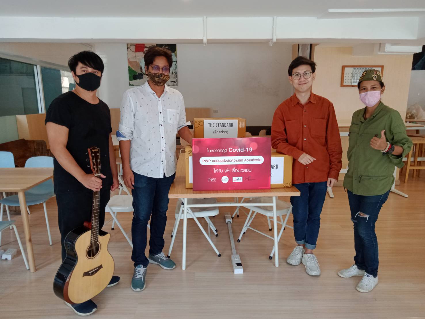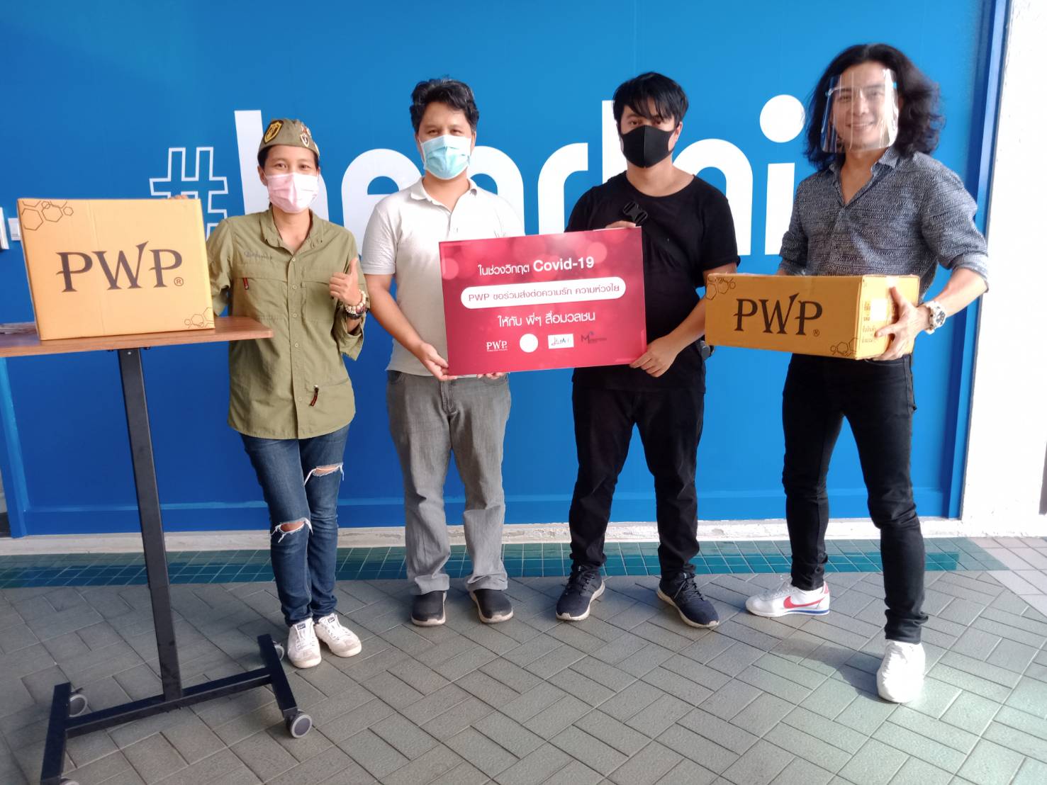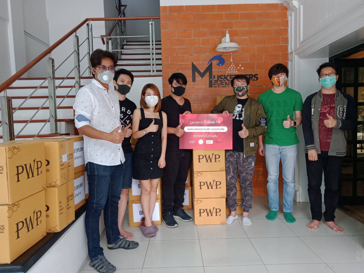 โครงการ “ส่งต่อความรัก ความห่วงใย” โดย PWP พร้อมกับ Musketeers Event , Ride Explorer และ Line Art Production ร่วมมอบผลิตภัณฑ์เจลล้างมือพร้อมส่งต่อกำลังใจให้กับ บุคลากรทางการแพทย์ / สื่อมวลชน และคนไทย ในช่วงวิกฤตโควิด-19 และความปลอดภัย ให้ก้าวผ่านวิกฤตโควิด-19 นี้ นำทีมโดย คุณนภัทร สมหวังสกุล ผู้บริหารฝ่ายการตลาด บริษัท เออีซี อินโนเวชั่น คอส จำกัด ผู้ผลิตและผู้จัดจำหน่ายผลิตภัณฑ์เครื่องสำอางภายใต้ชื่อแบรนด์ PWP พร้อมด้วย คุณวีระชัย นิชาภัทร กรรมการผู้จัดการ บริษัท Musketeers Event , คุณศุทธวีร์ กาญจนภัคพงค์ Ride Explorer พันธมิตร และศิลปินมาร่วมส่งต่อความห่วงใย ไปด้วยกันในครั้งนี้