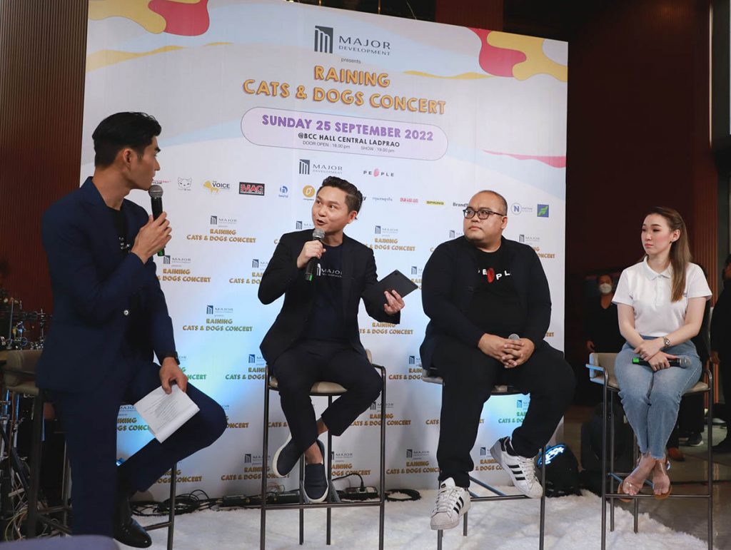 คุณชวลิต วรสารพิสุทธิ์ ประธานบริหารฝ่ายส่งเสริมประสบการณ์และบริการลูกค้า บริษัท เมเจอร์ ดีเวลลอปเม้นท์ จำกัด (มหาชน) ได้พูดถึงที่มาของคอนเสิร์ต MAJOR DEVELOPMENT presents RAINING CATS & DOGS Concert ไว้ว่า “นอกจากความสนุกบนเวทีจากกลุ่มศิลปินมากฝีมือแล้ว คอนเสิร์ตครั้งนี้ยังจัดขึ้นภายใต้แนวคิด “สุขเท่าเทียม” ของเมเจอร์ฯ ที่ให้ความสำคัญกับความสุขของน้องหมาน้องแมว ซึ่งเป็นหนึ่งในสมาชิกสำคัญของลูกบ้านเมเจอร์ฯหลากหลายครอบครัว ในฐานะผู้นำคอนโดมิเนียมเลี้ยงสัตว์ได้ของเมืองไทย เมเจอร์ฯจึงอยากส่งมอบความสุขให้กับลูกบ้านที่เป็นทาสน้องหมาน้องแมวผ่านศิลปิน #ทีมหมา #ทีมแมว ในงานคอนเสิร์ตครั้งนี้ ทั้งนี้ยังได้เป็นการสนับสนุนมูลนิธิและกลุ่มคนอาสาที่ทำงานช่วยเหลือหมาจรแมวจร อย่างเพจทูนหัวของบ่าว และ มูลนิธิ The Voice ที่มีจุดมุ่งหมายเพื่อคุณภาพชีวิตที่ดีของสัตว์ต่างๆและลดจำนวนหมาจรแมวจร หลายครั้งที่เหตุผลของการทิ้งสัตว์เลี้ยงคือที่อยู่อาศัยไม่เอื้ออำนวยให้เลี้ยงสัตว์ได้ เมเจอร์ฯจึงอยากให้เวทีคอนเสิร์ตนี้ส่งมอบแนวคิดในการเลือกที่อยู่อาศัยที่เป็นมิตรกับสัตว์เลี้ยงเพื่อคุณภาพชีวิตและความสุขที่ยั่งยืนตลอดไป คอนโดมิเนียมทุกโครงการของเมเจอร์ ดีเวลลอปเม้นท์ อนุญาตให้เลี้ยงสัตว์ได้ (Pet-friendly residence) จึงเป็นทางเลือกให้คนยุคใหม่ที่ต้องการใช้ชีวิตในเมืองและมีสัตว์เลี้ยงเป็นสมาชิกในครอบครัว”
