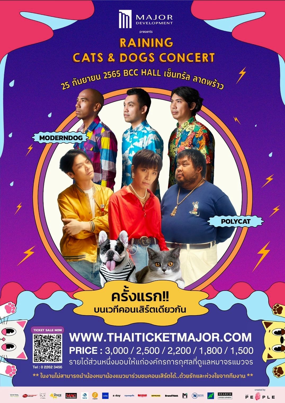 เตรียมพบกับคอนเสิร์ต MAJOR DEVELOPMENT presents RAINING CATS & DOGS Concert ‘ระเบิดความสนุก เพื่อความสุขของน้องหมาน้องแมว’ เป็นคอนเสิร์ตที่จัดขึ้นโดย MAJOR DEVELOPMENT ผู้พัฒนาอสังหาริมทรัพย์ระดับบลักชูรีและคอนโดมิเนียมเลี้ยงสัตว์ได้ ร่วมกับ THE PEOPLE สื่อออนไลน์ที่บอกเล่าเรื่องราวของ ‘คน’ จัดขึ้นในวันที่ 25 กันยายนนี้ ณ BCC HALL เซ็นทรัล ลาดพร้าว