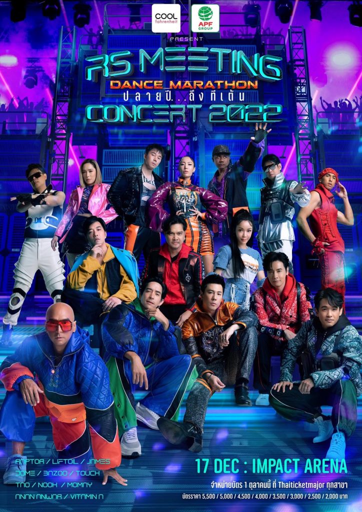 กลับมาเอาใจแฟนเพลงที่ #โตมากับอาร์เอส อีกครั้งหลังจากห่างหายไปเกือบ 10 ปี กับปรากฏการณ์ที่เขย่าความสุขความสนุกสุดมันส์กับศิลปินดังระดับตำนานในยุค 90s สำหรับ “COOLfahrenheit และ อำพลฟูดส์ 35 ปี Present RS Meeting Concert 2022 : Dance Marathon ปลายปี…ถึงทีเต้น” คอนเสิร์ตที่อยากชวนทุกคนเตรียม Warm Up ร่างกายให้พร้อมรับความสนุก แล้วมากรอความสุข กลับสู่ยุค 90s ก่อนจะมาออกสเต็ปสุดเท่ห์ แบบกิ๊บเก๋ยูเรก้า เพราะเราเปิดฟลอร์รอแดนซ์กับศิลปินสายเต้นระดับนัมเบอร์ 1 กว่า 15 ชีวิตอย่าง แร็พเตอร์ / ลิฟท์-ออย / เจมส์ เรืองศักดิ์ / โดม ปกรณ์ ลัม / ทัช ณ ตะกั่วทุ่ง / เต๋า สมชาย / นุ๊ก สุทธิดา / โมเม / บาซู / อนัน อันวา / ไวตามิน เอ และแขกเซอร์ไพรส์สุดพิเศษ ที่มาพร้อมเพลงฮิตติดหู และท่าเต้นที่คุ้นเคย อาทิ เกรงใจ, รมณ์บ่จอย, ไม่อาจเปลี่ยนใจ, ยิ่งรักเธอ, เท้าไฟ, สมชายจรดปลายเท้า, ถอนสายบัว, กระดุ๊กกระดิ๊ก, โธ่เอ๊ย, ตะลึง, หลุดโลก ฯลฯ เรียกว่าเป็นการรวมทุกความสนุก ความสุข ความทรงจำให้ย้อนกลับมาอีกครั้งในบรรยากาศคอนเสิร์ตเวที แสง เสียงเต็มรูปแบบ ในวันเสาร์ที่ 17 ธันวาคม นี้ ณ IMPACT ARENA เมืองทองธานี