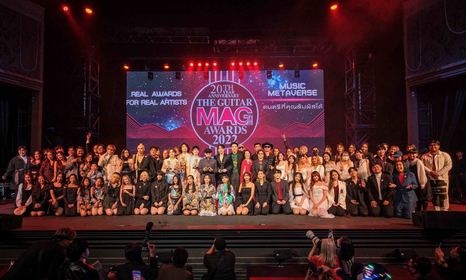 The Guitar Mag Awards 2022 งานประกาศรางวัลทางดนตรีระดับ “Music Festival” ที่สุดในเมืองไทยเพื่อครบรอบ 20 ปีให้กับ นิตยสาร The Guitar Mag สื่อสิ่งพิมพ์และออนไลน์ทางดนตรีอันดับ 1 ของเมืองไทย นี่คือค่ำคืนที่ยิ่งใหญ่ที่สุดของวงการดนตรี เป็นงานเดียวที่คนดนตรีทั้งเบื้องหน้า-เบื้องหลัง จากหลากหลายค่ายเพลงได้มารวมตัวกันเพื่อเฉลิมฉลอง และเป็นการจัดงานประกาศรางวัลครั้งที่ 11 ในคอนเซ็ปต์ “Music Metaverse ดนตรีที่คุณสัมผัสได้” โดยไฮไลท์ของงานจะมีการมอบ 14 รางวัลอันทรงเกียรติ การเดินพรมแดง RED CARPET ของศิลปินชื่อดังกว่า 100 ชีวิต และการแสดง Showcase สุดพิเศษแบบ Unseen ที่จัดทำขึ้นเพื่องานนี้โดยเฉพาะ!! ซึ่งในครั้งนี้จะได้พบกับ โชว์สุดพิเศษมากกว่า 50 ชีวิต จาก 10 ค่ายเพลง เพื่อให้แฟนเพลงได้สัมผัสดนตรีที่แท้จริงในทุกแนว