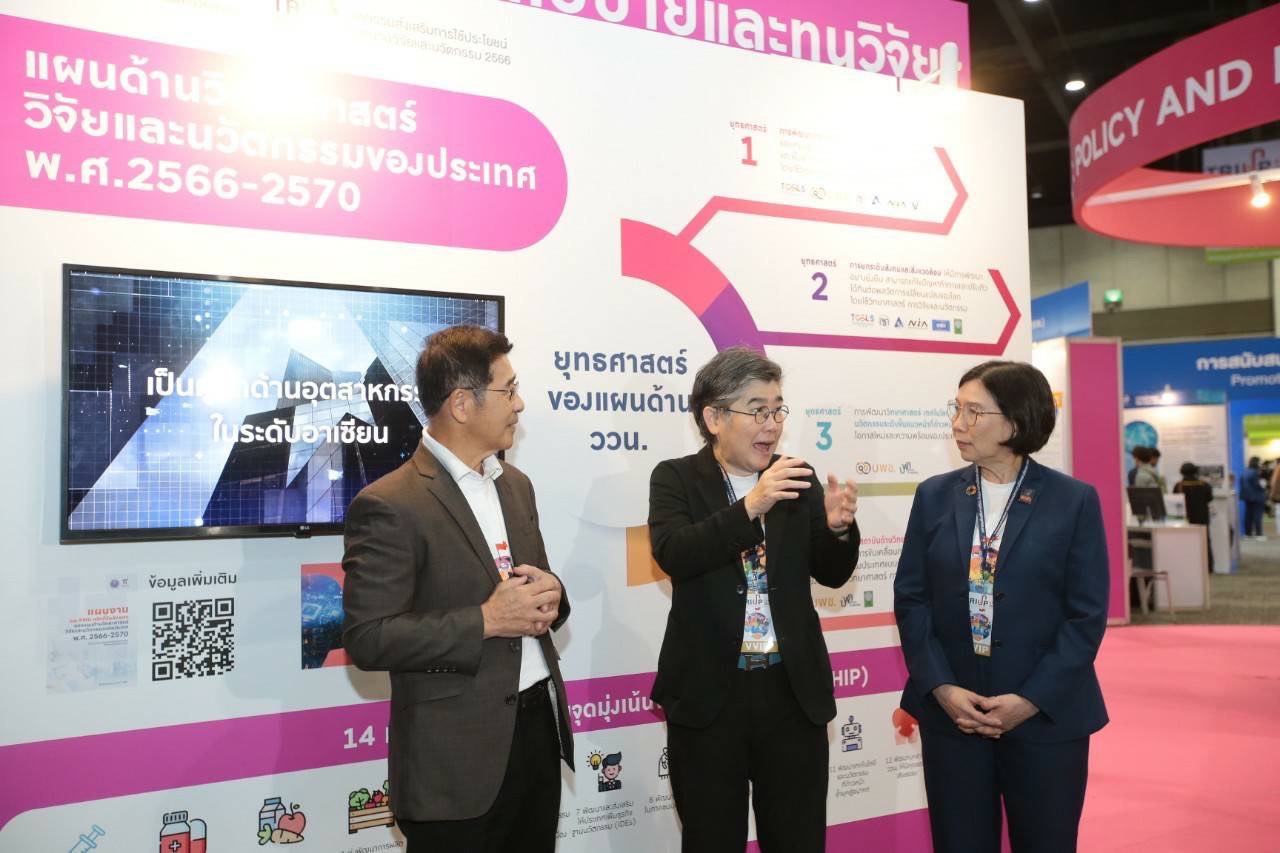 เมื่อวันที่ 18 กรกฎาคม 2566, สำนักงานคณะกรรมการส่งเสริมวิทยาศาสตร์ วิจัยและนวัตกรรม หรือ สกสว. ร่วมกับภาคีเครือข่ายด้านวิจัยและนวัตกรรม หน่วยบริหารและจัดการทุนวิจัย (PMU) 9 แห่ง มหาวิทยาลัย สถาบันวิจัย และภาคเอกชน นำโดยสภาอุตสาหกรรมแห่งประเทศไทย หอการค้าไทยและสภาหอการค้าแห่งประเทศไทย หน่วยงานภาครัฐที่กำกับดูแลกลไกหนุนเสริมการพัฒนาภาคธุรกิจ รวมถึงหน่วยงานภาคการเงิน และการลงทุนอีกมากมาย ร่วมจัดงานนี้ขึ้นเพื่อผลักดันการวิจัยและนวัตกรรมของไทยสู่การใช้ประโยชน์อย่างเป็นรูปธรรม โดยได้รับเกียรติจาก ศ.กิตติคุณ นพ.สุทธิพร จิตต์มิตรภาพ ประธานกรรมการส่งเสริมวิทยาศาสตร์ วิจัยและนวัตกรรม (กสว.) เป็นประธานในพิธี พร้อมด้วย รศ. ดร.ปัทมาวดี โพชนุกูล ผู้อำนวยการสำนักงานคณะกรรมการส่งเสริมวิทยาศาสตร์ วิจัยและนวัตกรรม (สกสว.) คุณเกรียงไกร เธียรนุกุล ประธานสภาอุตสาหกรรมแห่งประเทศไทย คุณปริม จิตจรุงพร ประธานคณะกรรมการส่งเสริมนวัตกรรม และวิจัย หอการค้าไทยและสภาหอการค้าแห่งประเทศไทย คุณวนัส แต้ไพสิฐพงษ์ ประธานคณะอนุกรรมการด้านการนำผลงานวิจัยและนวัตกรรมไปใช้ประโยชน์ และผู้มีเกียรติ เข้าร่วมในพิธีเปิดงาน ดังกล่าว