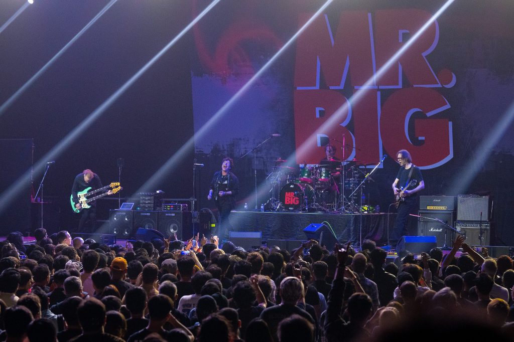 จากนั้นเจ้าของเวทีตัวจริงอย่าง Mr.BIG ก็ขึ้นมากระหน่ำแฟนเพลงด้วยคำรามกึกก้องและยิ่งใหญ่สมกับเป็นสุดยอดซูเปอร์กรุ๊ปยุค 90 ด้วยเพลงฮิตอย่าง Addicted To That Rush, Take cover, Undertow ก่อนจะปั่นทั้งสว่านและแฟนเพลงให้เดือดพล่านด้วยเพลงโคตรฮิต Daddy, Brother, Lover, Little Boy ต่อด้วย Alive and Kickin และ Green Tinted Sixties Mind การพูดคุยทักทายพอมีบ้างแค่ให้หายคิดถึงแต่ก็ไม่ทิ้งช่วงนานเพราะพวกเขาขนเอาเพลงดี ๆ มากำนัลแฟนเพลงอีกเพียบ Lucky This Time, VooDoo Kiss, Never Say Never, Just Take My Heart, My Kinda Woman, A Little To Loose, Road to Ruin. 2BWY, Big Love, The Chain, Promise Her The Moon, Where Do I Fit In?, Wild World, Colorado Bulldog ตลอดระยะเวลากว่าสองชั่วโมงเรียกได้ว่าพวกเขาซัดกันแบบลืมอายุ มันส์หยดแบบไม่ต้องเรียกหาอังกอร์ ก่อนปิดท้ายและอำลาไปด้วยสองเพลง Shy Boy, Good Lovin’ เป็นอันจบโชว์