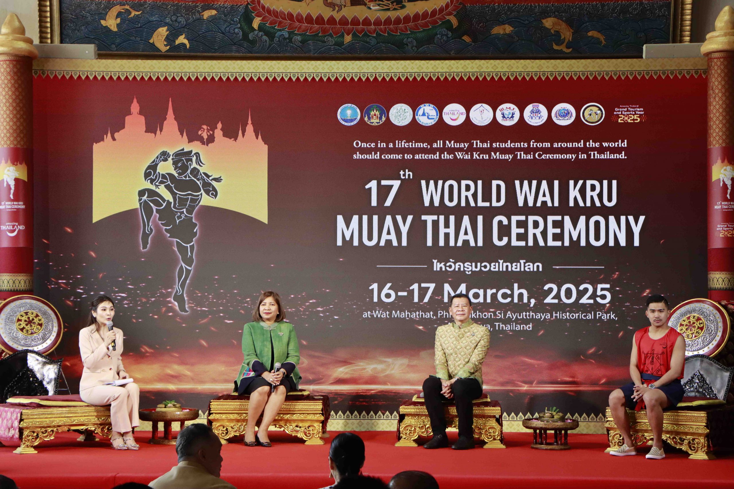กระทรวงการท่องเที่ยวและกีฬา โดยการท่องเที่ยวแห่งประเทศไทย (ททท.) ร่วมกับ จังหวัดพระนครศรีอยุธยา สมาคมสถาบันศิลปะการต่อสู้ป้องกันตัวแบบไทย สหพันธ์มวยไทยโลก และสมาคมกีฬามวยไทยและมวยโบราณ จัดแถลงข่าวงานไหว้ครูมวยไทยโลก ครั้งที่ 17 ณ ห้องโถงธนะรัชต์ ที่ผ่านมา ณ อาคาร ททท. สำนักงานใหญ่ โดยมีนางจิระวดี คุณทรัพย์ รองผู้ว่าการด้านสินค้าและธุรกิจท่องเที่ยว ททท. นายประพันธ์ ตรีบุบผา รองผู้ว่าราชการจังหวัด พระนครศรีอยุธยา และพระจันทร์ฉาย พี.เค.แสนชัยมวยไทยยิม แชมป์โลกมวยไทยรุ่นสตรอว์เวต ให้เกียรติเข้าร่วมงาน ซึ่งปีนี้จัดขึ้นระหว่างวันที่ 16-17 มีนาคม 2568 ณ อุทยานประวัติศาสตร์พระนครศรีอยุธยา จังหวัดพระนครศรีอยุธยา ตอกย้ำแนวคิด “ครั้งหนึ่งในชีวิตการเรียนมวยไทย ต้องมาร่วมพิธีไหว้ครูที่ประเทศไทย” พร้อมเปิดโอกาสให้นักท่องเที่ยวได้ร่วมสัมผัสอัตลักษณ์ความศักดิ์สิทธิ์ และความยิ่งใหญ่ของ Soft Power ศิลปะการต่อสู้ของไทย