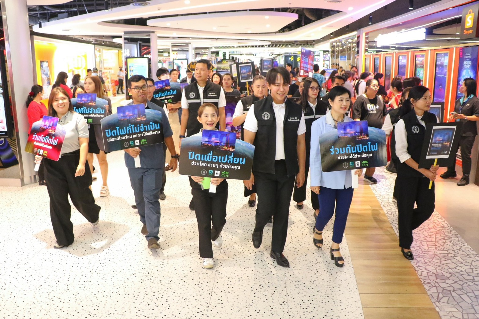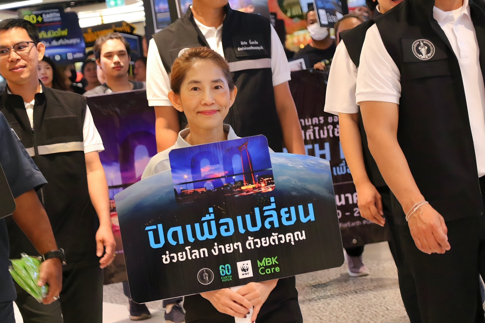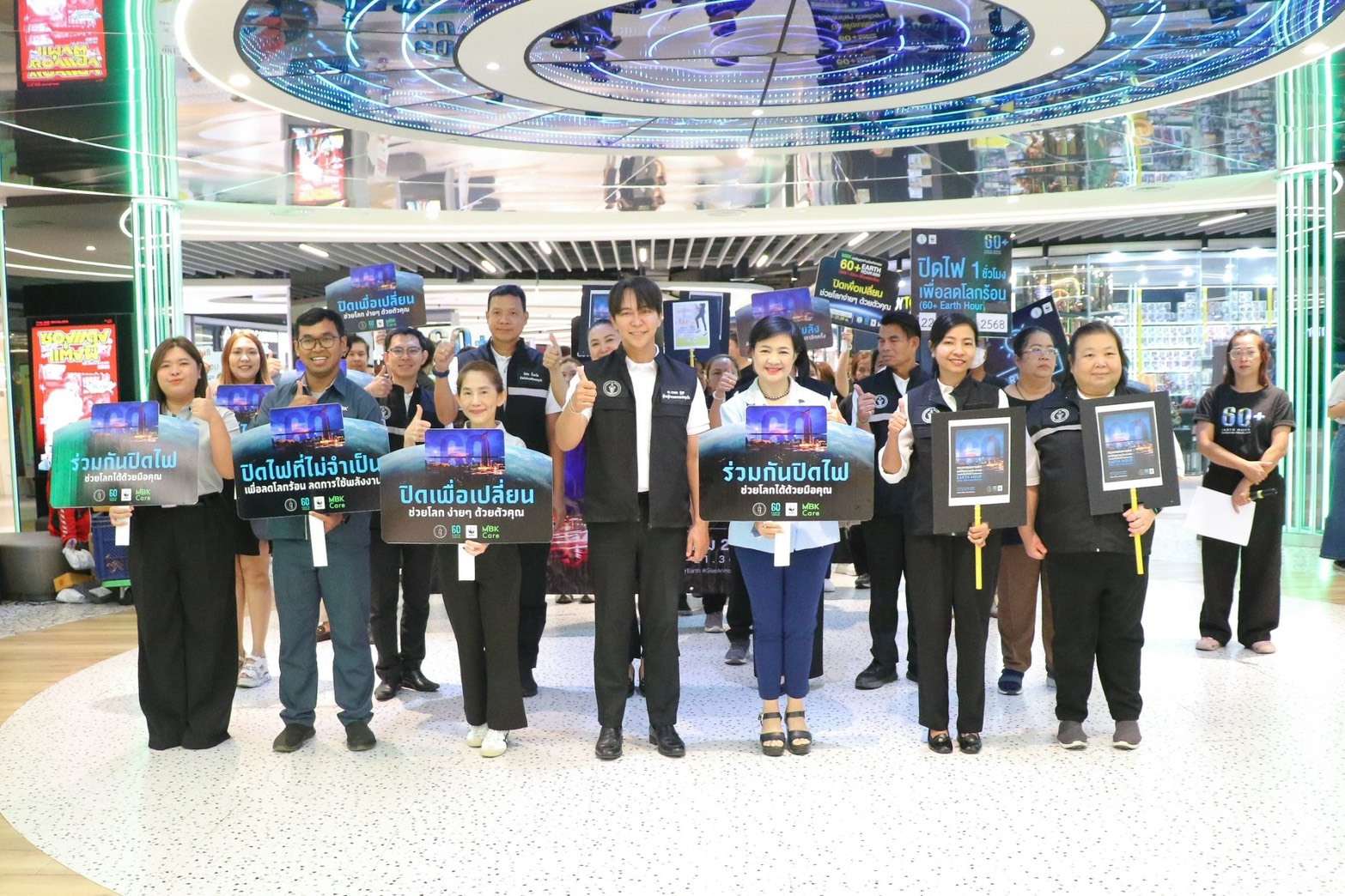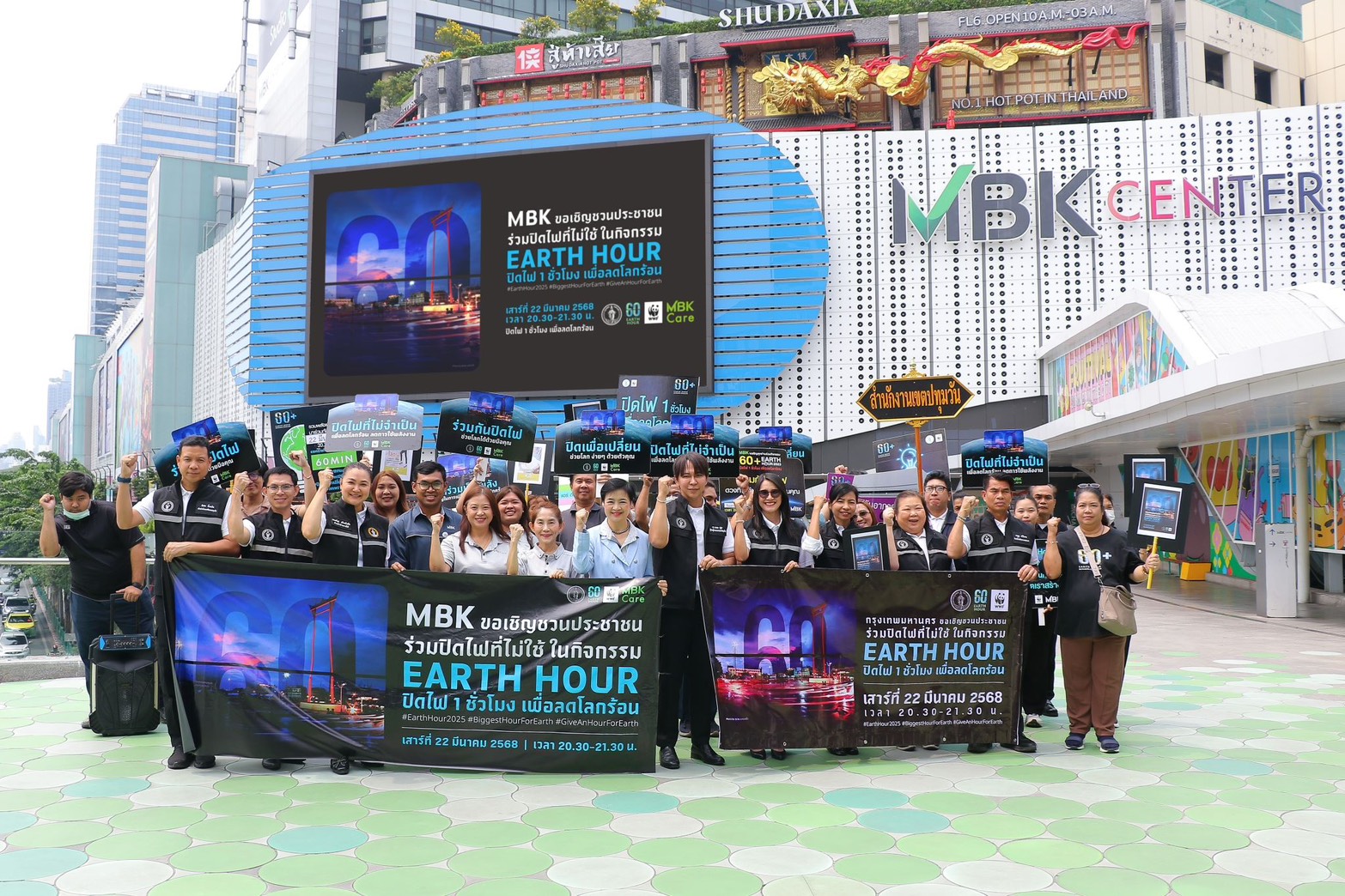 โดยในกิจกรรมรณรงค์ EARTH HOUR ปิดไฟ 1 ชั่วโมง เพื่อลดโลกร้อน (60+ Earth Hour 2025) ในศูนย์การค้าเอ็ม บี เค เซ็นเตอร์ นำโดย นางสาวสหัพย์ภัค โชควิจิตรกุล กรรมการผู้จัดการศูนย์การค้าเอ็ม บี เค เซ็นเตอร์ บริษัท เอ็ม บี เค จำกัด (มหาชน) นางสาวศตกมล วรกุล ผู้อำนวยการอาวุโสฝ่ายสื่อสารองค์กร บริษัท อินเทลลิเจ้นท์ ครีเอทีฟ แอนด์ มาร์เก็ตติ้ง จำกัด นำทีมพนักงานเอ็ม บี เค จากคณะทำงานด้านการจัดการพลังงาน เข้าร่วมกิจกรรมเดินรณรงค์ พร้อมให้การต้อนรับ ดร.นรเทพ ชูพูล ผู้ช่วยผู้อำนวยการเขตปทุมวัน และ คณะผู้ร่วมกิจกรรมรณรงค์ EARTH HOUR ปิดไฟ 1 ชั่วโมงจากสำนักงานเขตปทุมวัน ซึ่งได้แจกใบปลิวและรณรงค์เชิญชวนผู้ประกอบการร้านค้า พนักงานร้านค้า รวมถึงลูกค้าที่มาใช้บริการในศูนย์ฯ โดยรับความสนใจจากลูกค้าทั้งชาวไทยและนักท่องเที่ยวต่างชาติ