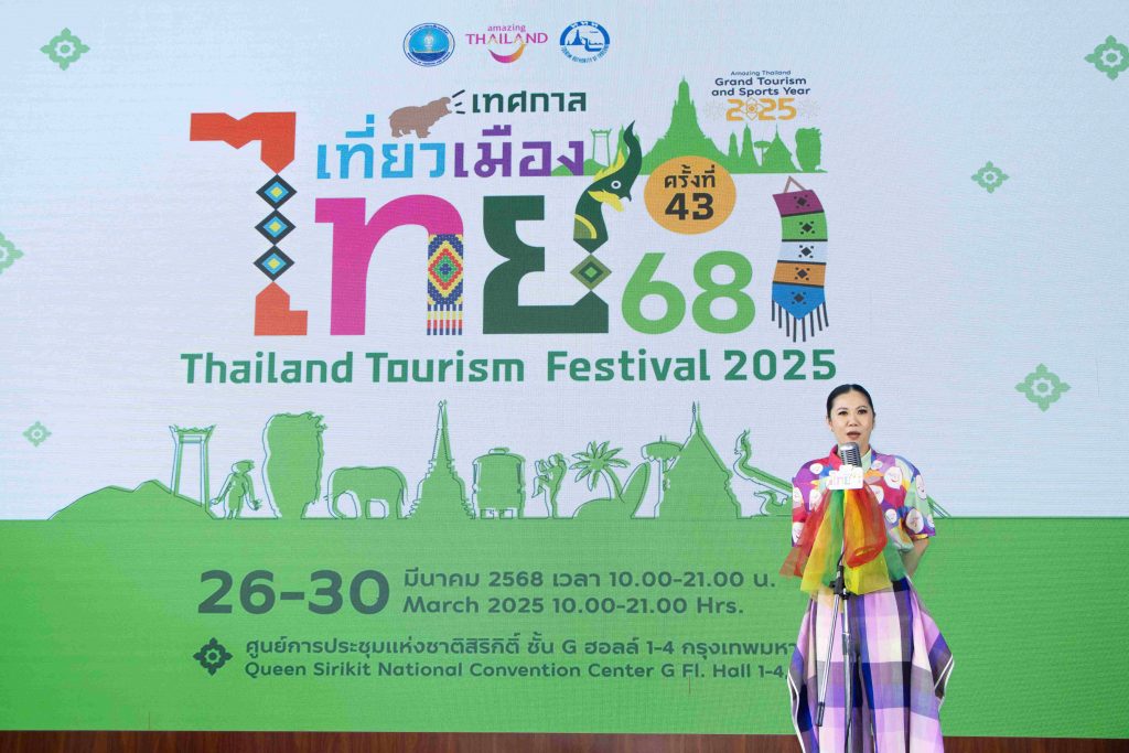 การท่องเที่ยวแห่งประเทศไทย (ททท.) นางสาวฐาปนีย์ เกียรติไพบูลย์ ผู้ว่าการการท่องเที่ยวแห่งประเทศไทย (ททท.) เป็นประธานในการแถลงข่าวการจัดงาน “เทศกาลเที่ยวเมืองไทย ประจำปี 2568 ครั้งที่ 43” ซึ่งจะจัดขึ้นในวันที่ 26-30 มีนาคม 2568 ณ ศูนย์การประชุมแห่งชาติสิริกิติ์ มหกรรมท่องเที่ยวครั้งยิ่งใหญ่นี้เป็นหนึ่งใน Grand Festivity ที่จะมอบความสุขแบบเต็มแมกซ์ให้กับนักท่องเที่ยว ภายใต้แนวคิด “5 Must Do in Thailand” พร้อมขนไฮไลต์พิเศษจาก 9 โซนกิจกรรมหลัก ที่จะพาดื่มด่ำกับเสน่ห์ของประเทศไทยครบทุกมิติ ทั้งแลนด์มาร์ก จุดถ่ายภาพสุดปัง ของดีของเด็ดจากทั่วประเทศ นวัตกรรมการท่องเที่ยวล้ำสมัย รวมถึงโชว์ศิลปวัฒนธรรมและการแสดงจากศิลปินชื่อดัง เพื่อสร้างแรงบันดาลใจเดินทางรับความสุขทันที ที่เที่ยวไทยตลอดทั้งปี