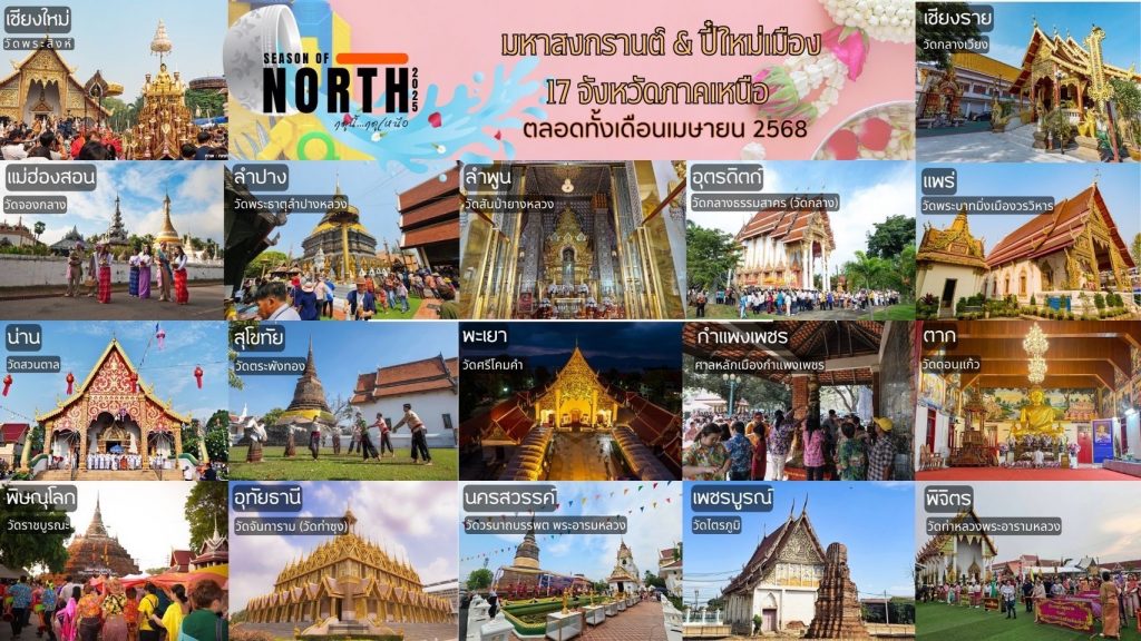 ในส่วนของภูมิภาคภาคเหนือ ททท. สำนักงานภาคเหนือร่วมกับภาครัฐและเอกชน จะจัดงาน "มหาสงกรานต์ & ปีใหม่เมือง 2568" อย่างยิ่งใหญ่เช่นเดียวกัน ในพื้นที 17 จังหวัดภาคเหนือ ตั้งแต่วันที่ 1 -30 เมษายน 2568 โดยเชิญชวนนักท่องเที่ยวมาสัมผัสกับมนต์เสน่ห์ของประเพณีสงกรานต์ หรือปี๋ใหม่เมืองของชาวเหนือที่ยึดถือปฏิบัติสืบเนื่องกันมาแต่โบราณ มีกิจกรรมตามขนบธรรมเนียมประเพณีของชาวเหนือต่างๆ มากมายให้ทุกท่านได้มีส่วนร่วม อาทิเช่น การทำบุญไหว้พระสรงน้ำพระพุทธรูปศักดิ์สิทธิ์, การปักตุงก่อเจดีย์ทรายเสริมสิริมงคล, รดน้ำ-ขอพรแสดงความเคารพผู้ใหญ่ที่นับถือ, การปล่อยนกปล่อยปลาทำบุญเพื่อแสดงความกรุณาต่อสัตว์, ชมขบวนแห่สงกรานต์ที่มีการตกแต่งขบวนด้วยดอกไม้และเครื่องประดับจากวัสดุธรรมชาติ, อิ่มอร่อยกับอาหารพื้นเมืองเลิศรสเอกลักษณ์ของชาวเหนือ, ตื่นตาตื่นใจกับชมการแสดงจากกลุ่มศิลปินท้องถิ่น และการเต้นรำ, สนุกสนานไปกับการรดน้ำสาดน้ำเล่นสงกรานต์และเดินทางท่องเที่ยวไปยังสถานที่ท่องเที่ยวครายร้อนต่างๆ เพื่อไปพักผ่อนหย่อนใจในช่วงวันหยุดยาว ทั้งในช่วงที่มีกิจกรรมตามประเพณีประจำปีระหว่างวันที่ 13-15 เมษายน 2568 และตลอดทั้งเดือนเมษายน 2568