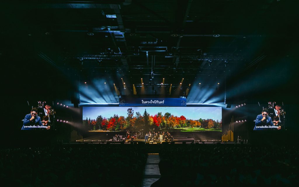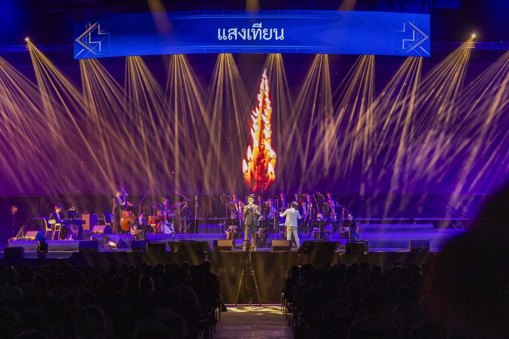 ท่ามกลางบรรยากาศที่อบอวลไปด้วยเสียงดนตรีของบทเพลงพระราชนิพนธ์อันทรงคุณค่า จากวงดนตรีแจ๊สบิ๊กแบนด์ มหาวิทยาลัยมหิดล ได้แก่ ชะตาชีวิต, สายฝน, ความฝันอันสูงสุด, ใกล้รุ่ง, แสงเทียน, ยามเย็น ฯลฯ ร่วมขับร้องโดยศิลปินคุณภาพ นภ พรชำนิ , เบน ชลาทิศ , คิว สุวีระ , รัดเกล้า อามระดิษ , บี พีระพัฒน์ , ลีเดีย ศรัณย์รัชต์ ,โก้ Mr.Saxman , อาร์ม กรกันต์ , มาเรียม เกรย์ , แนน สาธิดา , นิว นภัสสร , ฟางข้าว The Voice , เบิร์ด เอกชัย ,