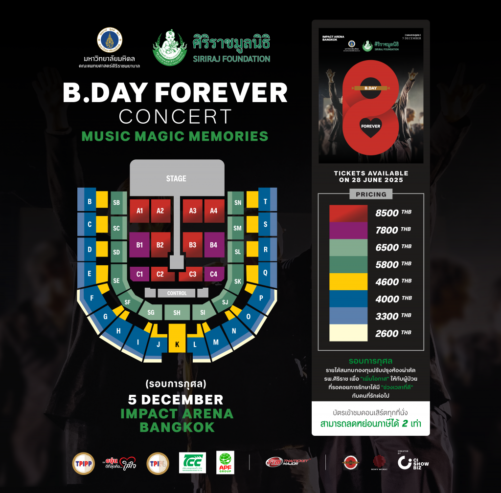 *สําหรับบัตรชมคอนเสิร์ตรอบการกุศลทุกที่นั่ง สามารถลดหย่อนภาษีได้ 2