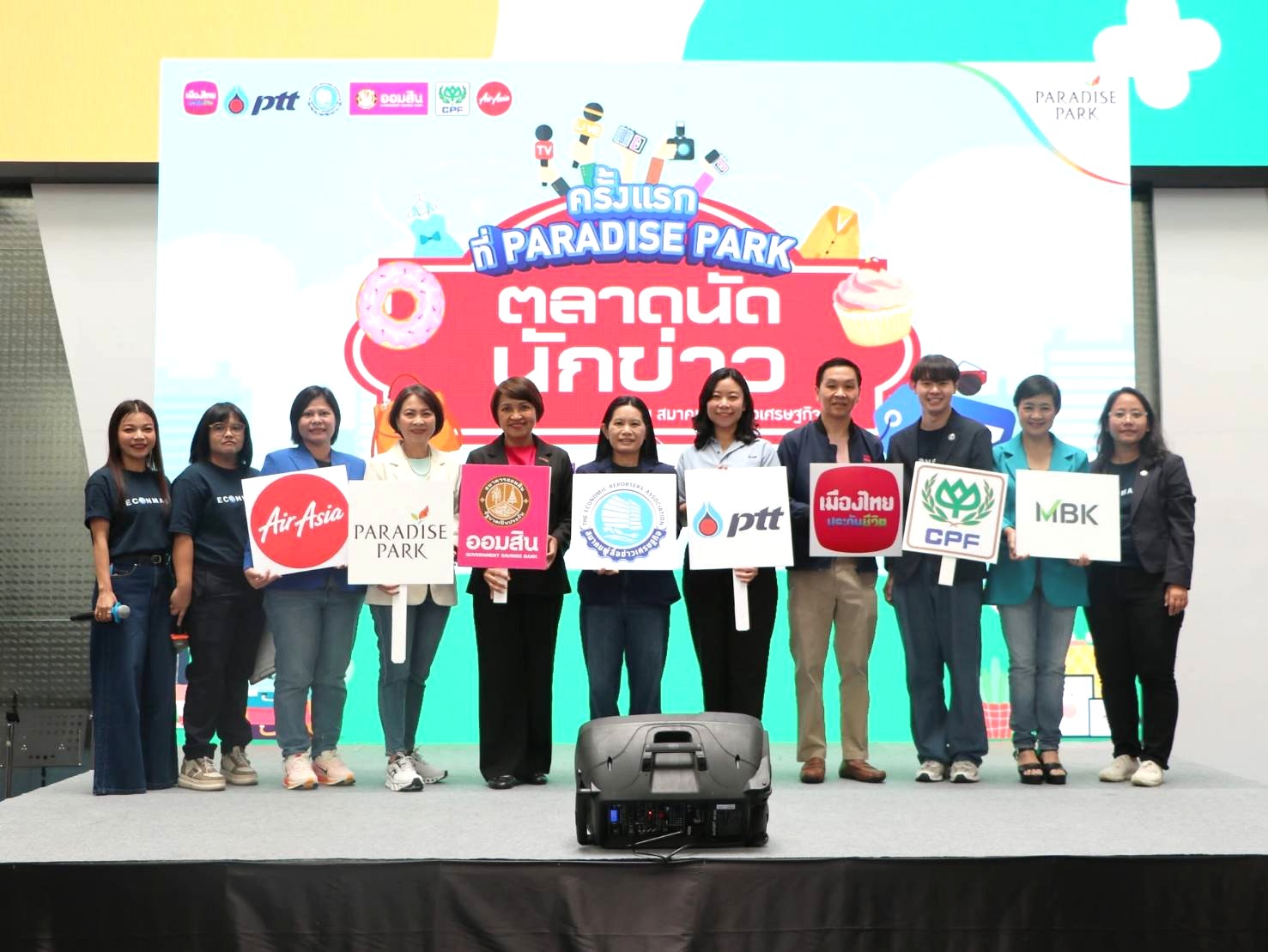 พาราไดซ์ พาร์ค ศูนย์การค้าในเครือเอ็ม บี เค เดินหน้าสานต่อพันธกิจเพื่อสังคม จัดกิจกรรมดี ๆ อย่างต่อเนื่อง โดยเมื่อเร็ว ๆ นี้ ได้สนับสนุนพื้นที่จัดงาน “ตลาดนัดนักข่าว ครั้งที่ 7” เพื่อเปิดโอกาสให้พี่น้องนักข่าวสายเศรษฐกิจได้มีพื้นที่ออกบูธจำหน่ายสินค้า เป็นการสร้างรายได้เสริมให้กับตนเองและครอบครัว ภายในงานได้รับเกียรติจาก นางสาวจรูญรัตน์ สาลี กรรมการผู้จัดการ บริษัท พาราไดซ์ พาร์ค จำกัด พร้อมด้วย นางสาวศตกมล วรกุล ผู้อำนวยการอาวุโสฝ่ายสื่อสารองค์กร บริษัท อินเทลลิเจ้นท์ ครีเอทีฟ แอนด์ มาร์เก็ตติ้ง จำกัด ร่วมต้อนรับ นางสาวดวงพร อุดมทิพย์ นายกสมาคมผู้สื่อข่าวเศรษฐกิจ พร้อมร่วมเปิดงานด้วยบรรยากาศที่อบอุ่นและเป็นเอง ณ ชั้น 1 ลานรอยัล พาร์ค พลาซ่า ศูนย์การค้าพาราไดซ์ พาร์ค