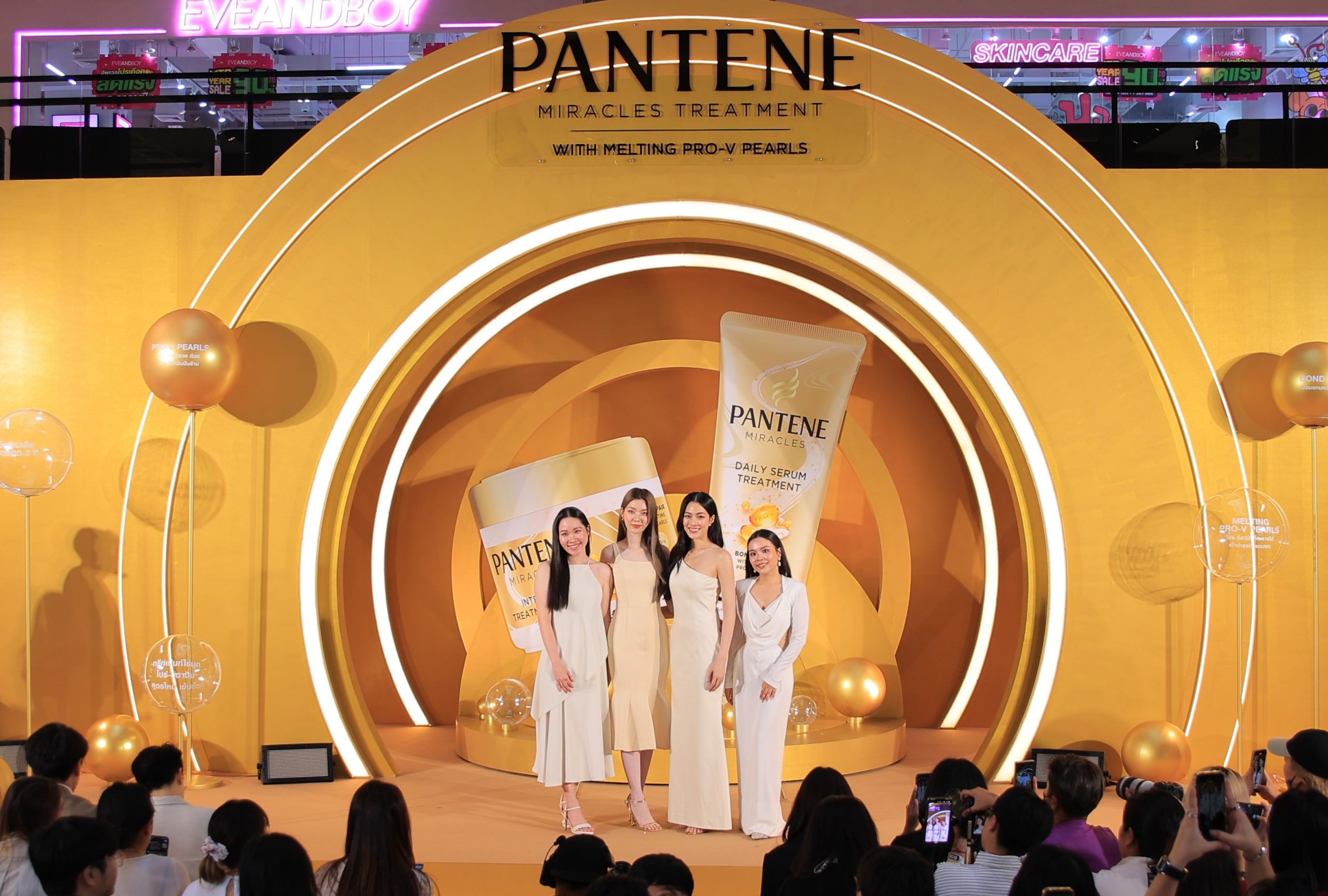 แพนทีน (PANTENE) แบรนด์ผลิตภัณฑ์ดูแลเส้นผมระดับโลก จัดงาน “Pantene Miracles Treatment Grand Opening Launch” เปิดตัวผลิตภัณฑ์ใหม่ล่าสุดในกลุ่ม “PANTENE MIRACLES TREATMENT WITH MELTING PRO-V PEARLS” #ทรีทเม้นท์ไข่มุก นวัตกรรมใหม่ล่าสุดที่ใช้เวลาพัฒนาและทำการวิจัยกว่า 7 ปี ออกมาเป็นทรีทเม้นท์สูตรใหม่ล่าสุดที่อัดแน่นไปด้วย Melting Pro-V Pearls หรือ ไข่มุกโปร-วี ที่สามารถ “มองเห็นวิตามินผมได้ด้วยตาเปล่า” ผ่านเทคโนโลยี Molecular Bond Repair ที่ช่วยซ่อมแซมพันธะโครงสร้างผมเสียจากเคมีและความร้อนในระดับโมเลกุล ที่ถูกคิดค้นเพื่อตอบโจทย์ผู้บริโภคยุคใหม่ที่ใส่ใจสุขภาพเส้นผม ด้วยคุณสมบัติบำรุงฟื้นฟูผมเสียสะสมที่เกิดขึ้นมายาวนาน ให้กลับมาแข็งแรงและมีชีวิตชีวา ให้ความสำคัญกับการดูแลสุขภาพแบบครบวงจร พร้อมตอกย้ำ “ผู้นำเทรนด์ ผลักดันสุขภาพผมยุคใหม่ก่อนใคร” ผ่าน 4 พรีเซนเตอร์คนดัง ณเดชน์ คูกิมิยะ, ญาญ่า อุรัสยา, หลิงหลิง-ศิริลักษณ์ คอง และออม-กรณ์นภัส เศรษฐรัตนพงศ์ ที่มาร่วมโชว์ลุคผมสวยแชร์ประสบการณ์ผู้ใช้จริง