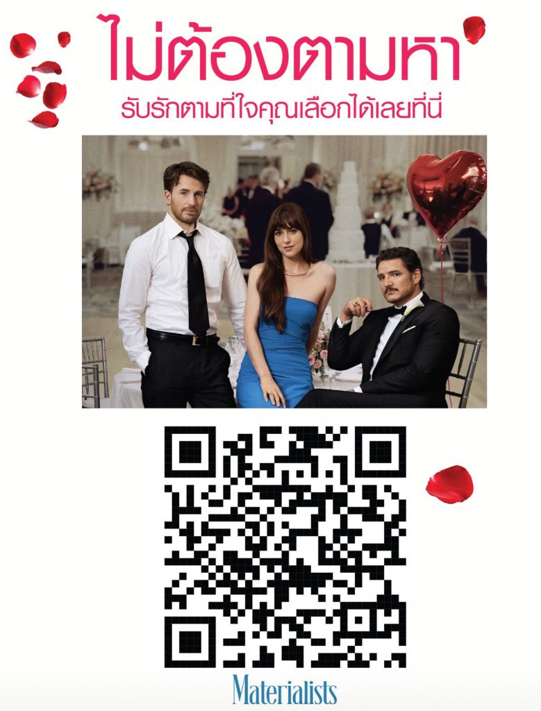 Materialists : รักแบบไหนที่ใจตามหา นำแสดงโดย “ดาโกตา จอห์นสัน, คริส อีแวนส์, เปโดร ปาสคาล” เขียนบทและกำกับโดย “เซลีน ซง” เรื่องราวที่เล่าถึง “ความรักในยุคของแอปรายา (Raya)” หรือยุคที่ทุกคนต่างพยายามอัปเกรดตัวเองให้สมบูรณ์แบบไปเรื่อยๆ Materialists ได้แรงบันดาลใจมาจากความจริงที่ซงเคยเห็นเมื่อสิบปีก่อน ปัจจุบัน “เช็กลิสต์ความรัก” ของผู้คนยิ่งดูตื้นเขินขึ้นทุกวัน โลกที่เราหาคู่ผ่านโปรไฟล์และการปัดหน้าจอไม่รู้จบ ยิ่งทำให้ความสัมพันธ์ดูเหมือนธุรกิจเข้าไปทุกที