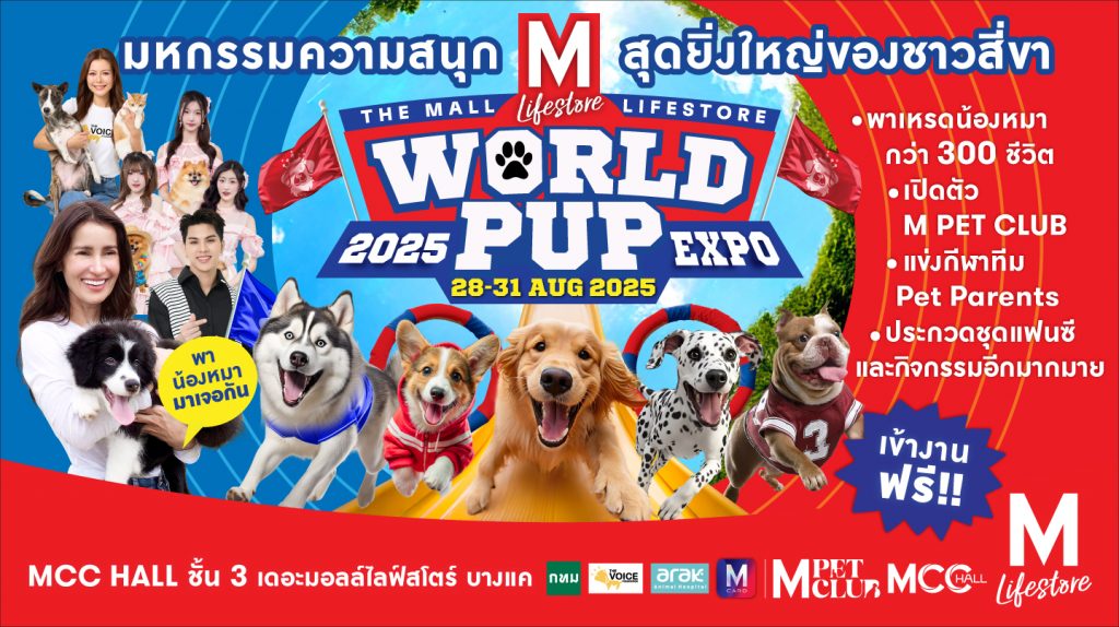 ต้อนรับ “วันสุนัขโลก” (World Dog Day) กับการรวมพลผู้ปกครองเพื่อมอบความสุขให้เจ้าสี่ขา ขอเชิญร่วมงาน “THE MALL LIFESTORE WORLD PUP EXPO 2025” ภายในงานพบสุดยอดกิจกรรมความสนุกของเจ้าสี่ขาและคนรักสุนัขพลาดไม่ได้ ! อาทิ