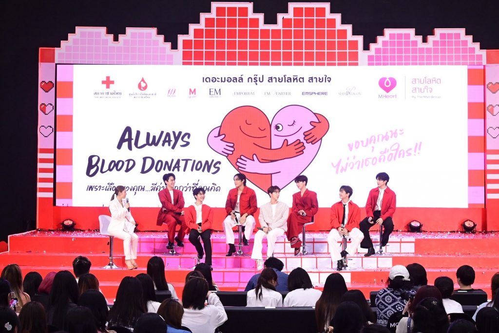 งาน ‘เดอะมอลล์ กรุ๊ป สายโลหิต สายใจ’ ในครั้งนี้จัดขึ้นที่ห้อง MCC HALL ชั้น 3 เดอะมอลล์ไลฟ์สโตร์ บางกะปิ ภายใต้แนวคิด ‘Always Blood Donations’ เพื่อรณรงค์ให้มีการบริจาคโลหิตอย่างต่อเนื่องทุกๆ 3 เดือน โดยได้รับเกียรติจาก นพ.โอภาส การย์กวินพงศ์ ปลัดกระทรวงสาธารณสุข ให้เกียรติเป็นประธานเปิดงาน ร่วมด้วย พญ.พรณรีย์ ทัศยาพันธุ์ รองผู้อำนวยการโรงพยาบาลสิรินธร ฝ่ายการแพทย์ และภาคีเครือข่ายภาครัฐ เอกชน รวมกว่า 60 องค์กร และ ศิลปินนักแสดงชื่อดังอย่าง กลัฟ – คณาวุฒิ ไตรพิพัฒนพงษ์ และ นักแสดงจากซีรีส์ Four Ever You ที่จะมาร่วมรณรงค์บริจาคโลหิต และสัมผัสมิติใหม่ของบรรยากาศงานรับบริจาคโลหิต ด้วย M Blood Bar เติมความสดชื่นหลังการบริจาคโลหิต จากบริษัท ไทยน้ำทิพย์ คอร์ปอเรชั่น จำกัด (มหาชน), โฟโต้บูทถ่ายภาพที่ระลึก บันทึกความทรงจำการร่วมบริจาคโลหิต รวมถึงของรางวัลพิเศษที่ให้ผู้มาร่วมบริจาคโลหิตได้ร่วมลุ้นกันมากมาย อาทิ ตั๋วเครื่องบินไป-กลับภายในประเทศไทย ของสายการบินไทยเวียตเจ็ท จำนวน 6 รางวัล , ทีวี LG ขนาด 43 นิ้ว 1 เครื่อง หูฟัง Sony WF-LS910 1 เครื่อง, PRINTER HP 1 เครื่อง ,เครื่องสกัดน้ำผลไม้ TEFAL 1 เครื่อง , ลำโพงบลูทูธ ACONATIC 1 เครื่อง , พัดลมพกพา IRIS OHYAMA 1 เครื่อง และของรางวัลจากพันธมิตรทางธุรกิจอีกเป็นจำนวนมาก