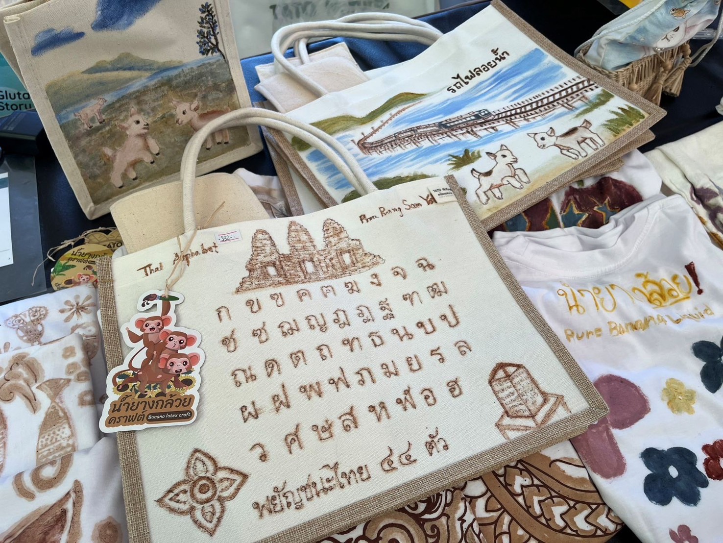 ร้าน TATO Natural น้ำยางกล้วยคราฟต์ ผลงานของกลุ่มวิสาหกิจชุมชนพืชภัณฑ์พัฒนา จ.ลพบุรี มีจุดเริ่มต้นจากการปลูกสวนกล้วยน้ำว้า เพื่อแปรรูปกล้วย ตั้งแต่หน่อ ลำต้น ก้าน ผล และตัดหัวปลีขายส่งตลาด แต่น้ำยางกล้วยที่เปื้อนเสื้อ กลับถูกนำมาเพิ่มคุณค่าด้วยการนำมาทำมัดย้อม สร้างลวดลายเอกลักษณ์บนผืนผ้าได้แบบไม่ซ้ำกัน เปลี่ยนปัญหาของที่ไม่มีใครสนใจให้เกิดมูลค่า สร้างสรรค์งานศิลปะจากธรรมชาติ สร้างรายได้ให้ทั้งเยาวชน ผู้สูงอายุ และผู้พิการในชุมชน