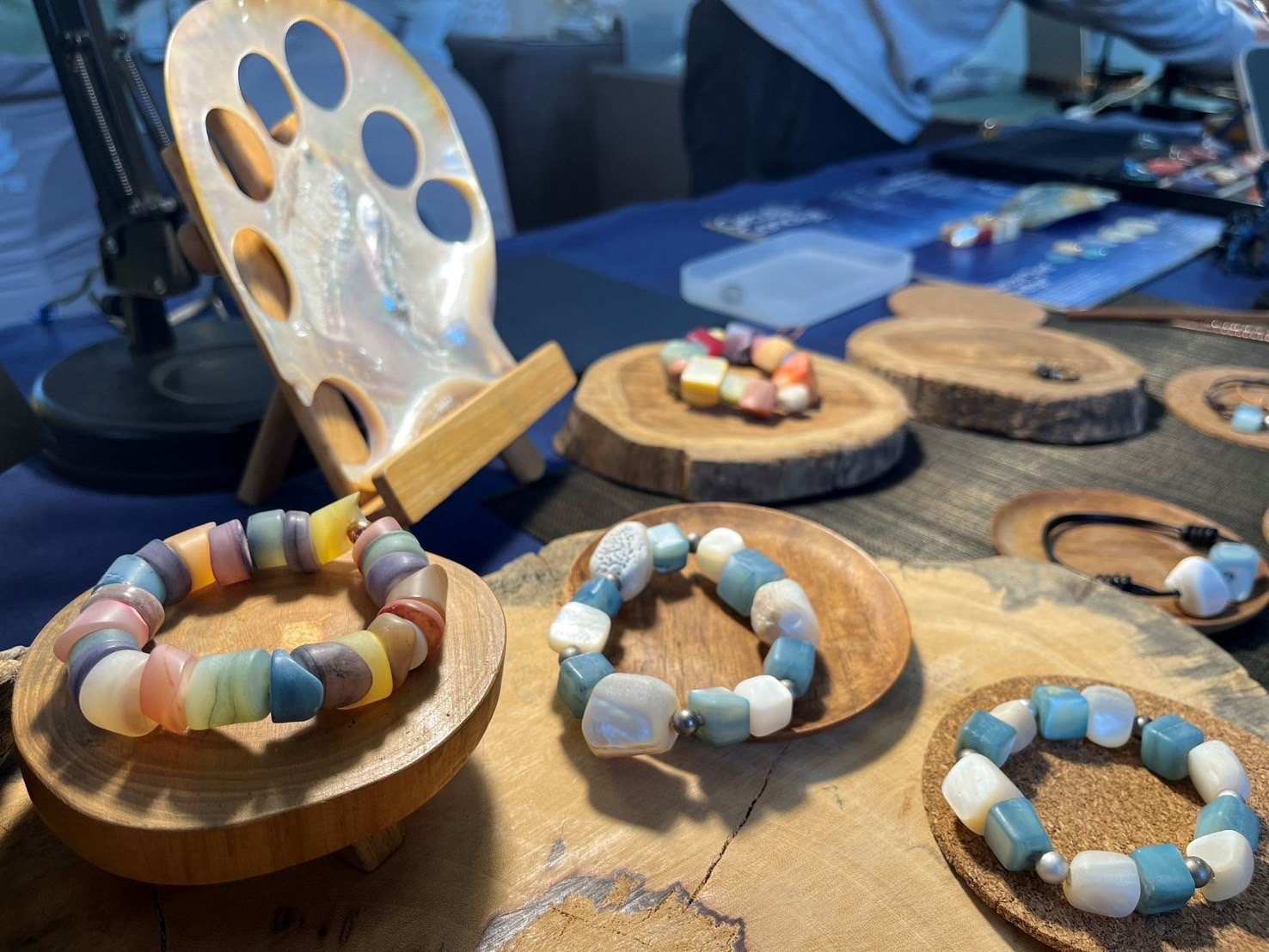 สาวๆ ที่ชื่นชอบเครื่องประดับเก๋ๆ ต้อง ร้าน G’CRAFTROOM โดยจุดเด่น คือการนำแนวคิดนวัตกรรมอัพไซคลิ่ง มาใช้ เมื่อพบว่ามีเปลือกหอยมุกจำนวนมากถูกทิ้งขว้าง หลังเลือกส่วนที่สวยงามทำหน้าปัดนาฬากาส่งต่างประเทศ เปลือกหอยที่ถูกทิ้งกว่า10 ปี ถูกสร้างสรรค์พัฒนาเป็นเครื่องประดับมากมาย อาทิ สร้อยข้อมือ แหวน ตุ้มหู จี้ห้อยคอ จิรวัฒน์ บุญสมบัติ นักออกแบบเครื่องประดับรักษ์โลก กล่าวว่า “เคยทำงานย้อมผ้ากับชุมชน สังเกตเล็บจะมีสิติดล้างไม่ออก จึงลองนำเปลือกหอยมุกมาย้อมด้วยสีธรรมชาติ ก่อนจะกลายเป็นเครื่องประดับรักษ์โลก เพราะไม่มีส่วนผสมที่เป็นเคมี สำหรับคนที่ใส่ใจเรื่องสิ่งแวดล้อม การใช้เครื่องประดับสามารถแสดงจุดยืนหรือแนวคิดที่จะช่วยกันรักษาสิ่งแวดล้อม เพื่อรักษาทรัพยากรธรรมชาติ รักษาโลกข องเราให้คงอยู่ได้”