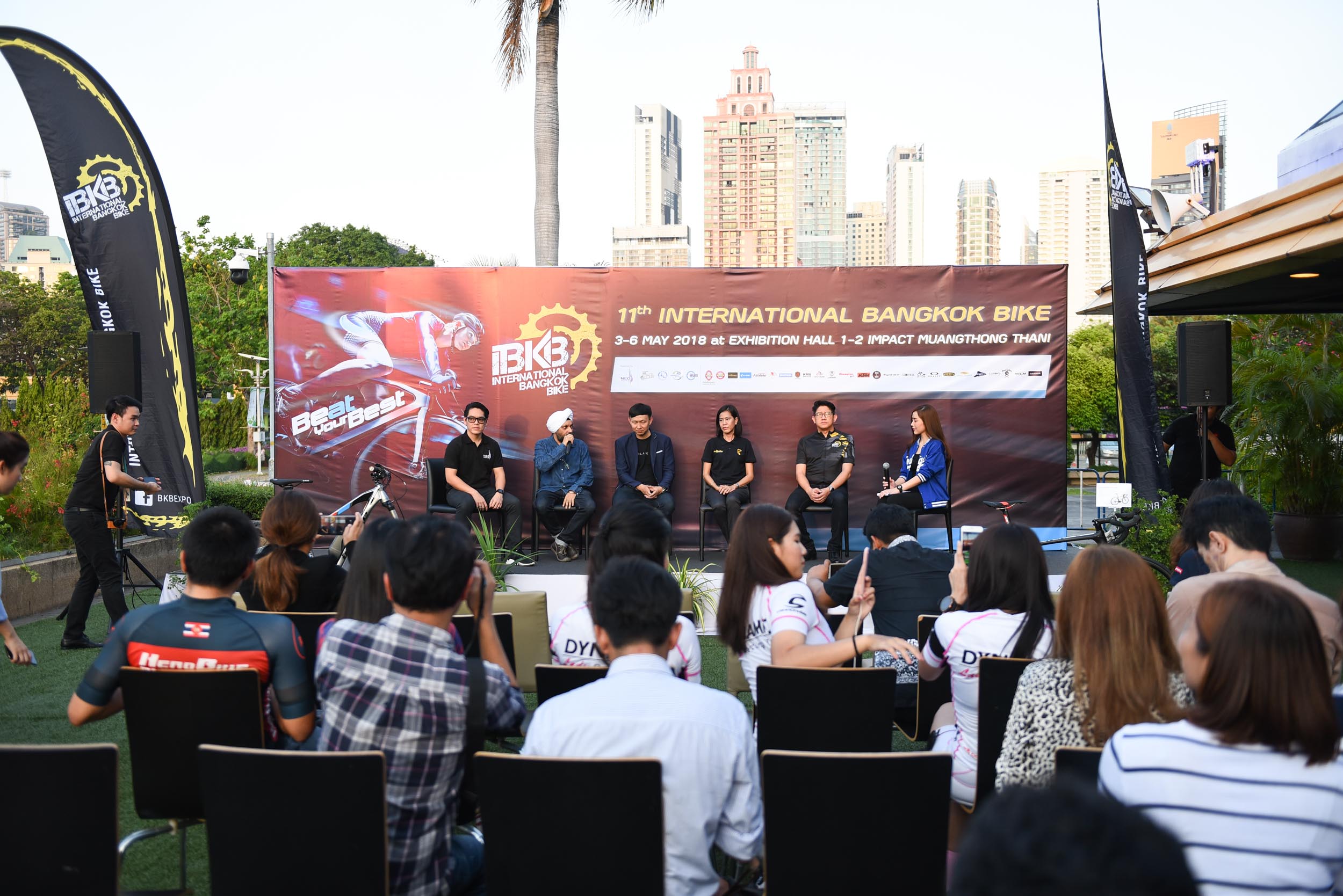 นายอาทิตย์ สองจันทึก ผู้จัดการโครงการ บริษัท .เอ็น.ซี.ซี.เอ็กซิบิชั่น ออกาไนเซอร์ จำกัด ร่วมกับ คุณศศิญา รวยป้อม ผู้อำนวยการฝ่ายการตลาด บริษัท แอล เอ ไบซิเคิ้ล (ประเทศไทย) จำกัด คุณธนรัตน์ เจียรพันธ์พงษ์ กรรมการผู้จัดการ บริษัท แชมเปี้ยน ไซเคิล จำกัด คุณระวิน เศรษฐี กรรมการผู้จัดการ บริษัท วารินดา จำกัด และ คุณบุญยะลาภ บุญยะลาโภ ผู้จัดการส่วนกิจกรรมพิเศษ บริษัท เอ็น.ซี.ซี. เอ็กซิบิชั่น ออกาไนเซอร์ จำกัด ร่วมกันแถลงข่าวจัดงาน “INTERNATIONAL BANGKOK BIKE ครั้งที่ 11” ระหว่างวันที่ 3-6 พฤษภาคม 2561 เวลา 10.00 – 21.00 น. ณ เอ็กซิบิชั่น ฮอลล์ 1-2 อิมแพ็ค เมืองทองธานี