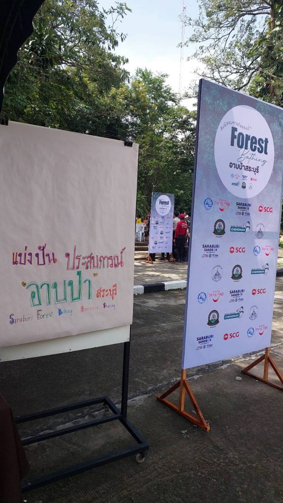 กิจกรรมอาบป่าอยู่ภายใต้ยุทธศาสตร์ “Saraburi Sandbox เมืองคาร์บอนต่ำ” โดยมีเป้าหมายเพิ่มพื้นที่สีเขียวและส่งเสริมการท่องเที่ยวเชิงนิเวศ ภาคเอกชนหลักอย่างบริษัท SCG จำกัด และบริษัท เคมีแมน จำกัด ได้เข้ามาสนับสนุนการดำเนินการของเครือข่ายป่าชุมชน เพื่อผลักดันการใช้ประโยชน์ป่าในเชิงอนุรักษ์ คำนึงถึงความสมดุลของสิ่งแวดล้อม เศรษฐกิจ และสังคม