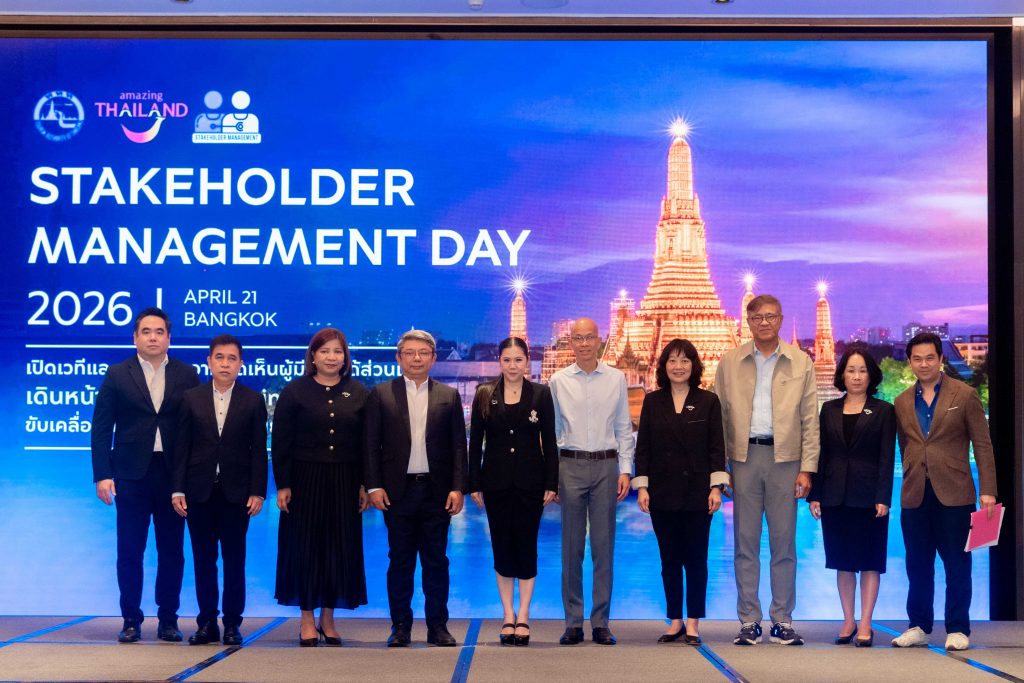 การท่องเที่ยวแห่งประเทศไทย (ททท.) เปิดเวทีใหญ่จัดกิจกรรม “TAT Stakeholder Management Day 2026” รวมพลังผู้มีส่วนได้ส่วนเสียร่วมขับเคลื่อนอุตสาหกรรมท่องเที่ยวไทย ภายใต้แนวคิดการสร้างความร่วมมือเชิงกลยุทธ์มุ่งสู่ความยั่งยืน พร้อมเดินหน้ากลยุทธ์ “Amazing 5 Economy” อย่างเต็มตัว โดยมี นายภูมิกิตติ์ รักแต่งาม คณะกรรมการ ททท. และ นางสาวฐาปนีย์ เกียรติไพบูลย์ ผู้ว่าการ ททท. ร่วมเป็นประธานเปิดงาน พร้อมด้วย นายจีระยุ จารุกิตติวรกานต์ คณะกรรมการ ททท. และคณะผู้บริหารระดับสูง ททท. ร่วมเจาะลึกแนวทางการทำงานในเสวนาไฮไลต์ “Executive Talk: Amazing 5 Economy & The Real Cases” ณ ห้องคาร์ลตันแกรนด์บอลรูม ชั้น 9 โรงแรมคาร์ลตัน กรุงเทพฯ สุขุมวิท