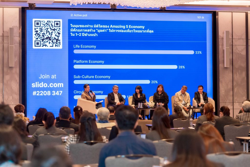 ไฮไลต์สำคัญของงานคือเวทีเสวนา “Executive Talk: Amazing 5 Economy & The Real Cases” ซึ่งเป็นการนำเสนอแนวคิด Amazing 5 Economy ในมิติการปฏิบัติงานจริง โดยรองผู้ว่าการ ททท. ทั้ง 5 ด้าน ได้แก่ นายนิธี สีแพร รองผู้ว่าการด้านสื่อสารการตลาด, นางสาวภัทรอนงค์ ณ เชียงใหม่ รองผู้ว่าการด้านตลาดเอเชียและแปซิฟิกใต้, นางจิระวดี คุณทรัพย์ รองผู้ว่าการด้านตลาดยุโรป อเมริกา ตะวันออกกลาง และแอฟริกา,